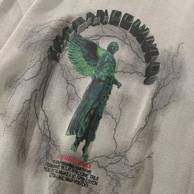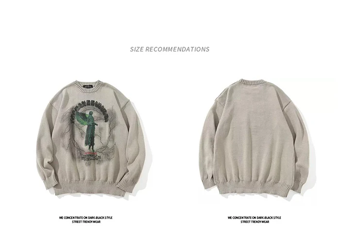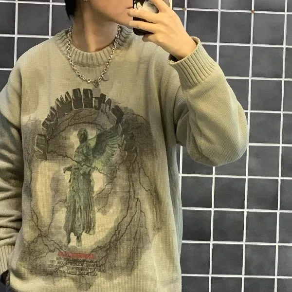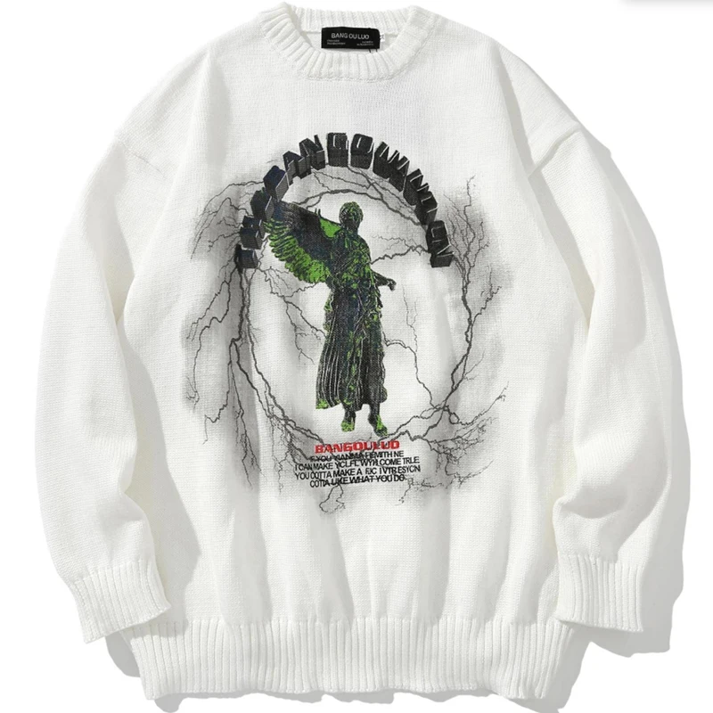 Свитер Мужской трикотажный в стиле хип-хоп, уличная одежда с принтом ангела и молнии, Повседневный пуловер оверсайз в стиле Харадзюку, Осень-зима