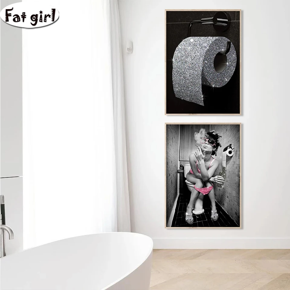 Модная сексуальная женская 5d Diy Алмазная вышивка, девушка, питьевая бар, алмазная живопись, шикарная Туалетная рулонная бумага, картина, Современная мозаика
