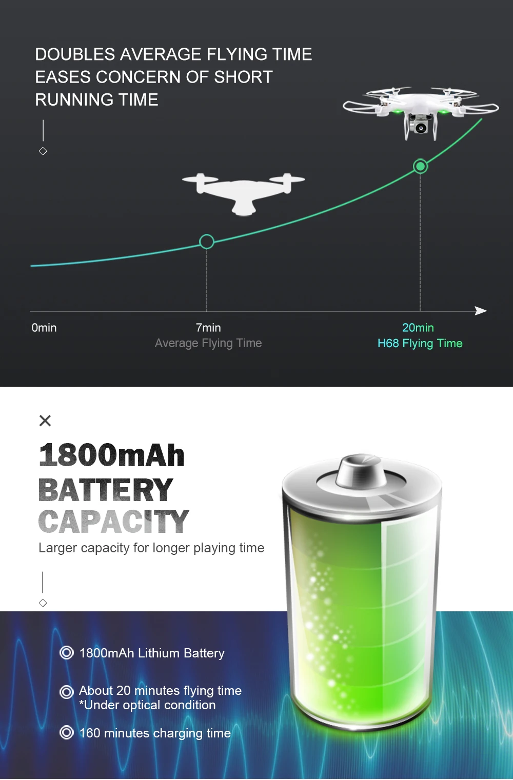 Квадрокоптер JJRC H68 FPV с HD-камерой 6K, Wi-Fi