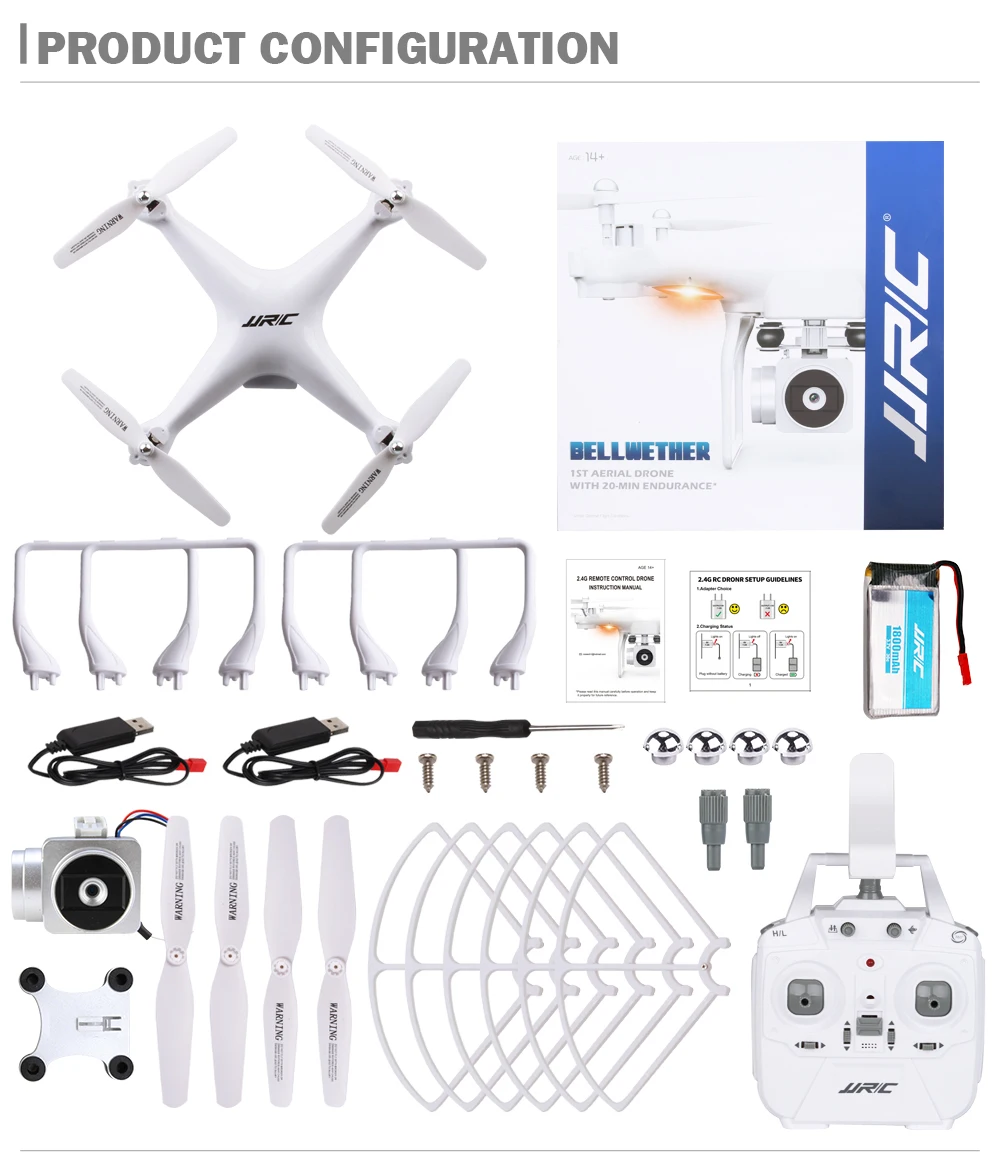 Зарядное устройство USB * 2, отвертка * 1, руководство пользователя * 1, батарея * 1, запасная защита пропеллера * 6, запасная крышка пропеллера * 4, запасной винт * 4, держатель на мобильный телефон * 1, камера * 1,