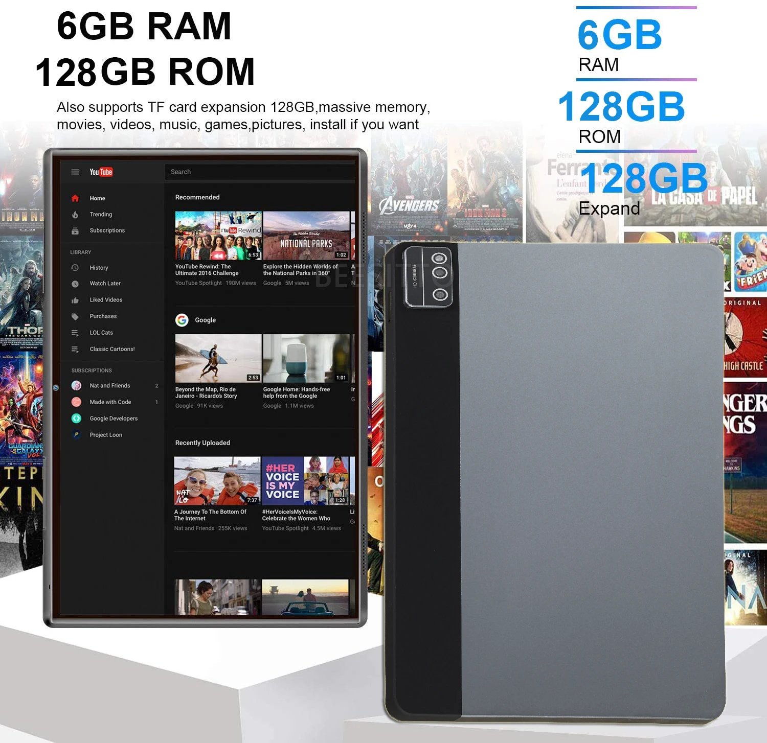 Новый дизайн 2022, 10-дюймовые Планшеты Android, 8 ГБ ОЗУ, 128 Гб П...