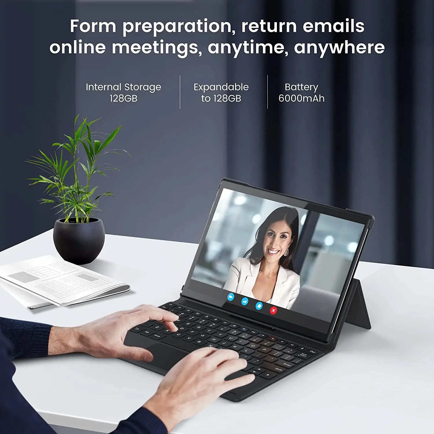 Планшет 2 в 1 на Android, восемь ядер, экран 10,1 дюйма, 8 ГБ + 128 ГБ