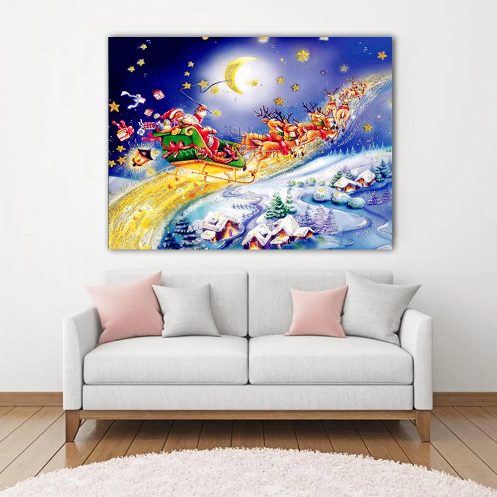 Картина 5D бриллиантовый рисунок Рождество Sleigh Train, подарок на праздник, круглая вышивка сделай сам, мозаика с изображением пейзажа, домашний декор
