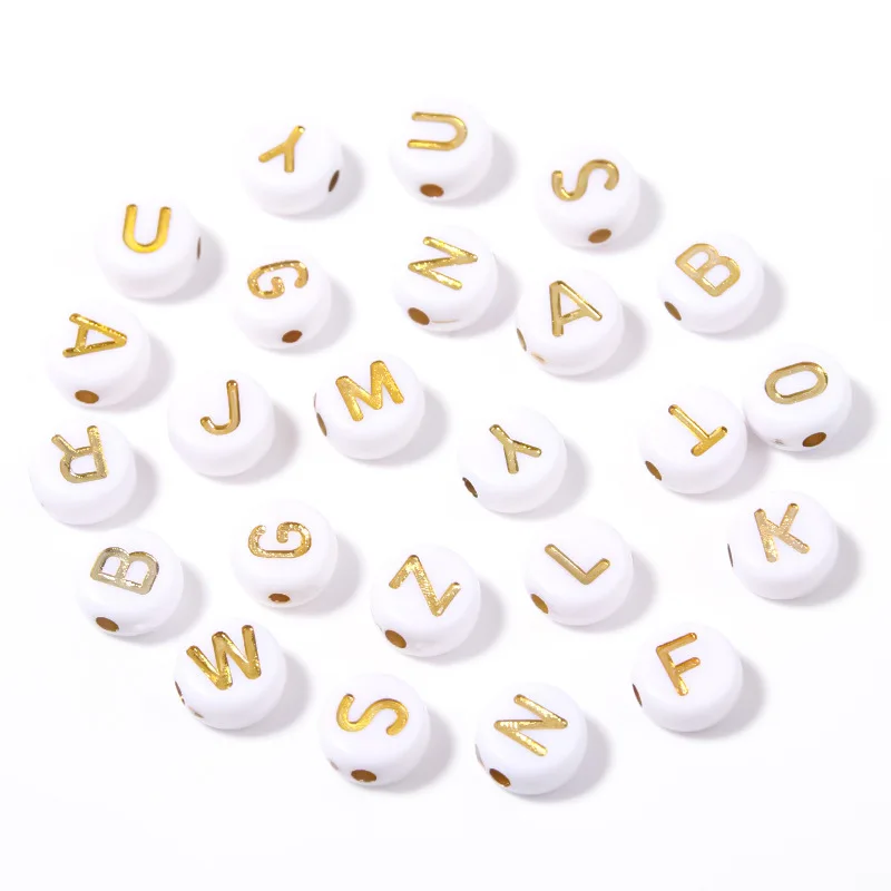 Алфавит белый и золотистый акриловый, 100 шт., 7 х4 мм