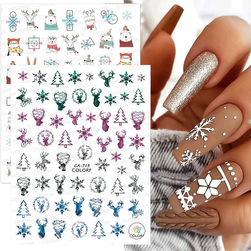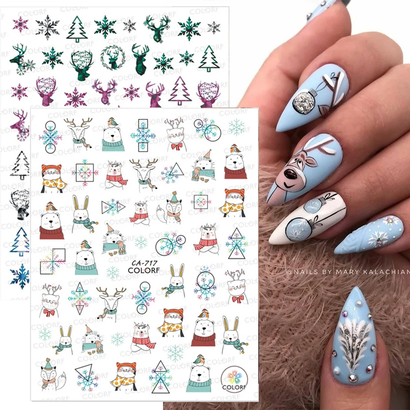 Зимние Рождественские 3D наклейки для ногтей, рождественские наклейки для ногтей, имитация лося, кролика, мультяшный слайдер, дизайнерские наклейки для ногтей, дизайн ногтей, декор сделай сам