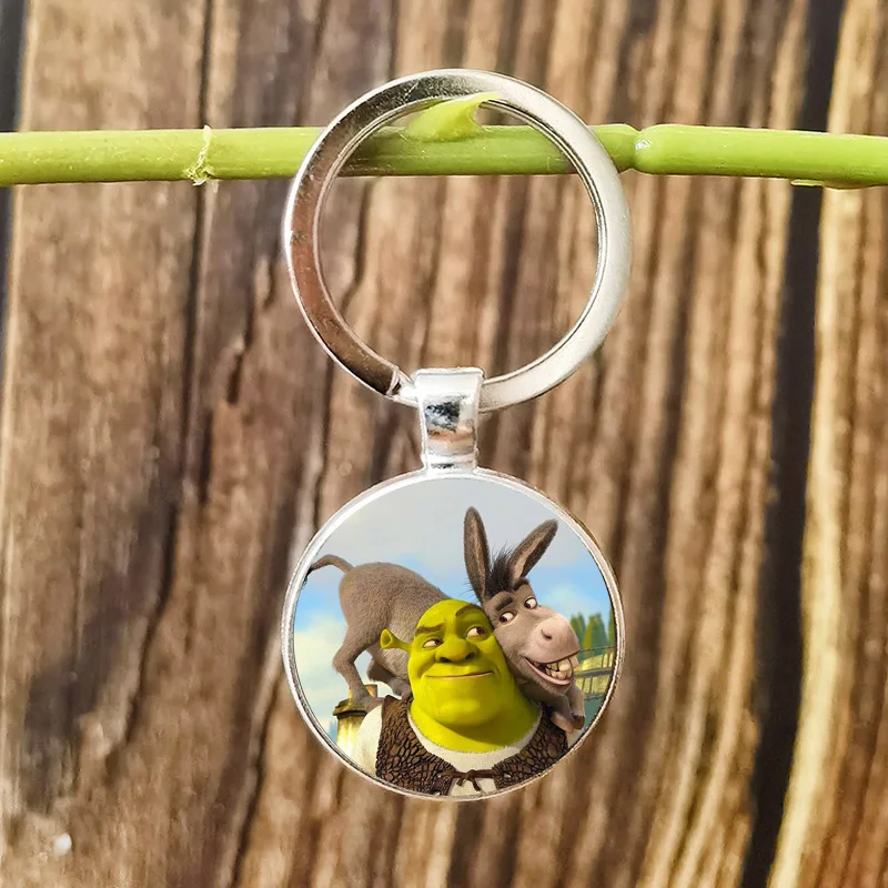 Забавный брелок Шрек для ключей лучшие друзья дикая природа животные Милая мультяшная фигурка Стеклянная Круглая Подвеска Сплав Брелок для ключей для мужчин детей дружба подарок