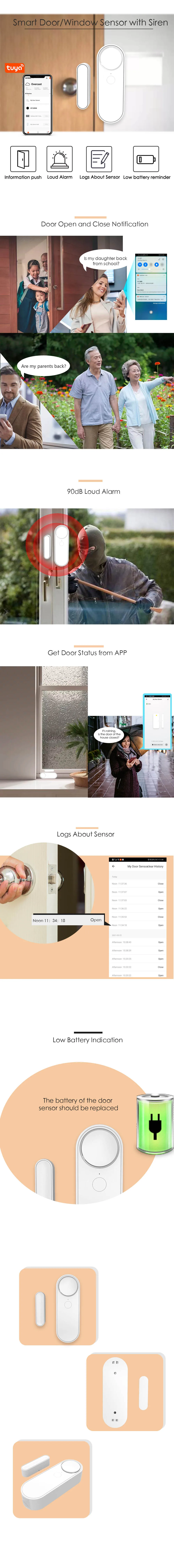 Смарт-датчик двери Tuya с Wi-Fi, датчик открывания и закрытия дверей, совместим с Alexa, Google Home, умным управлением через приложение