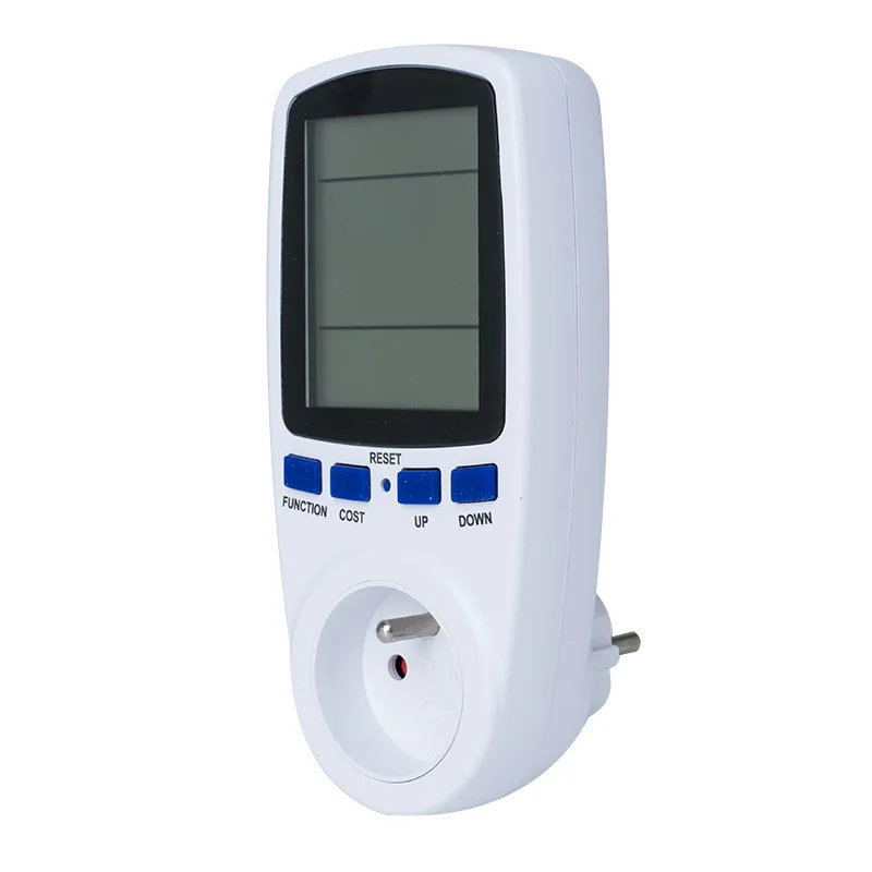 Стандартная розетка, цифровой ваттметр напряжения, потребляемая мощ...