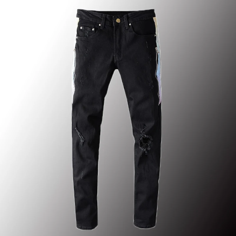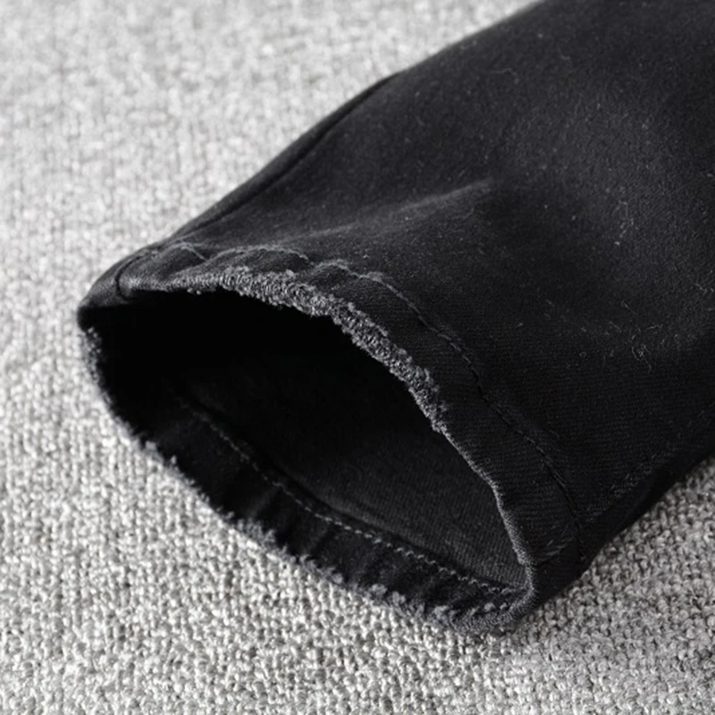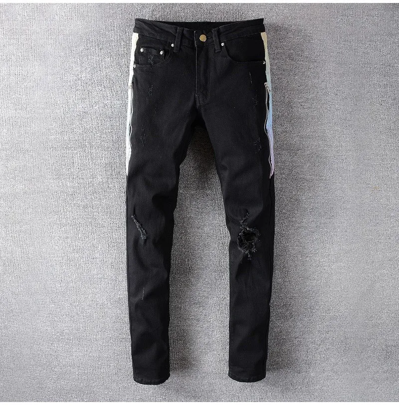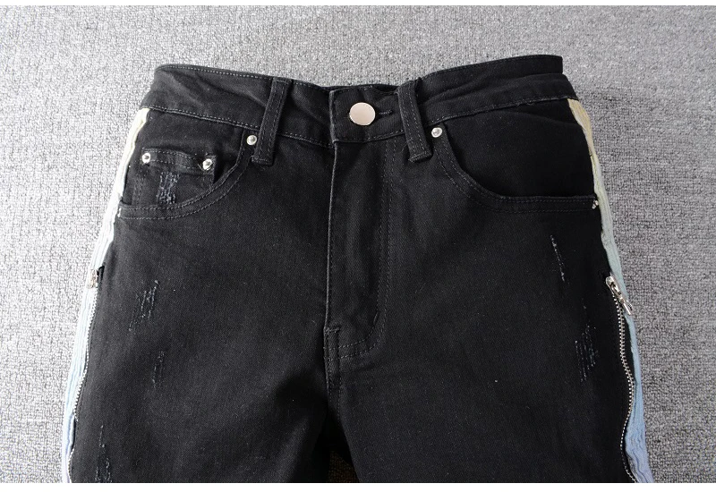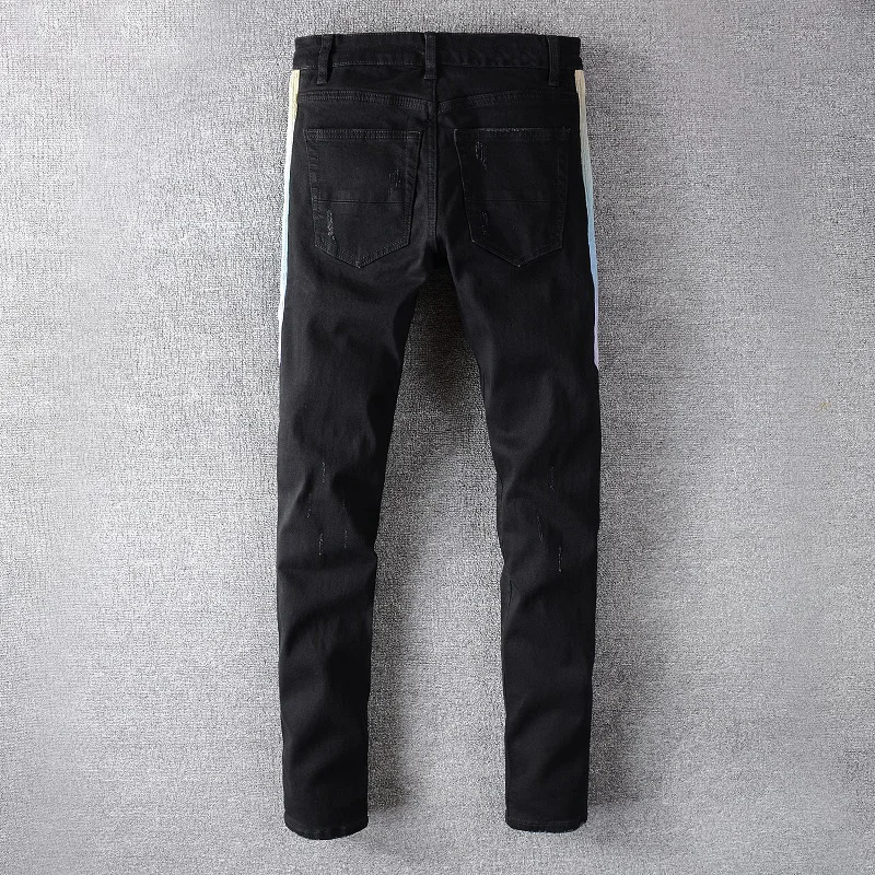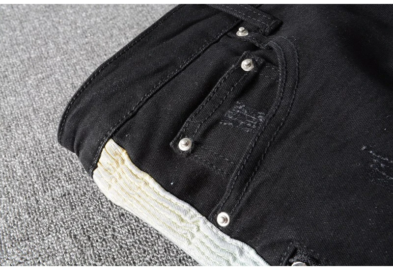 2021 роскошные мужские Плиссированные полосатые черные джинсы в стиле пэчворк уличная одежда тонкие Стрейчевые рваные джинсовые брюки большого размера 40