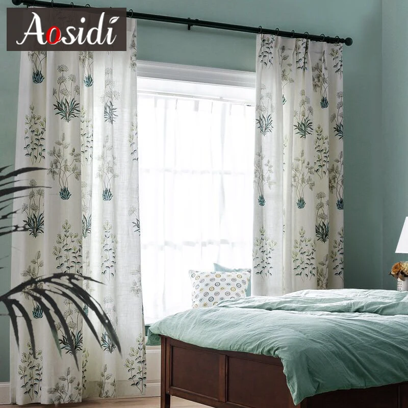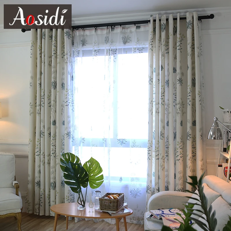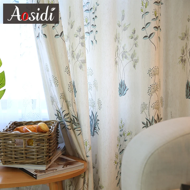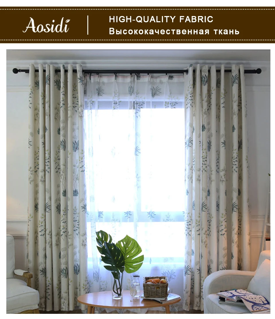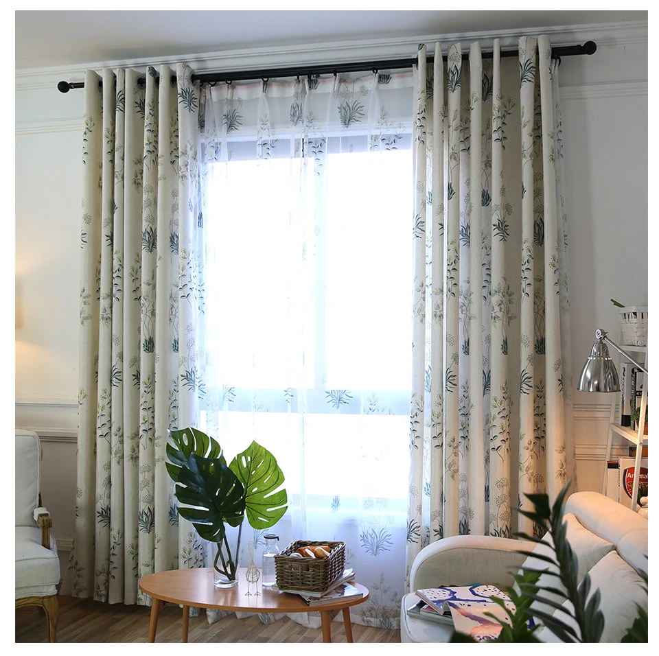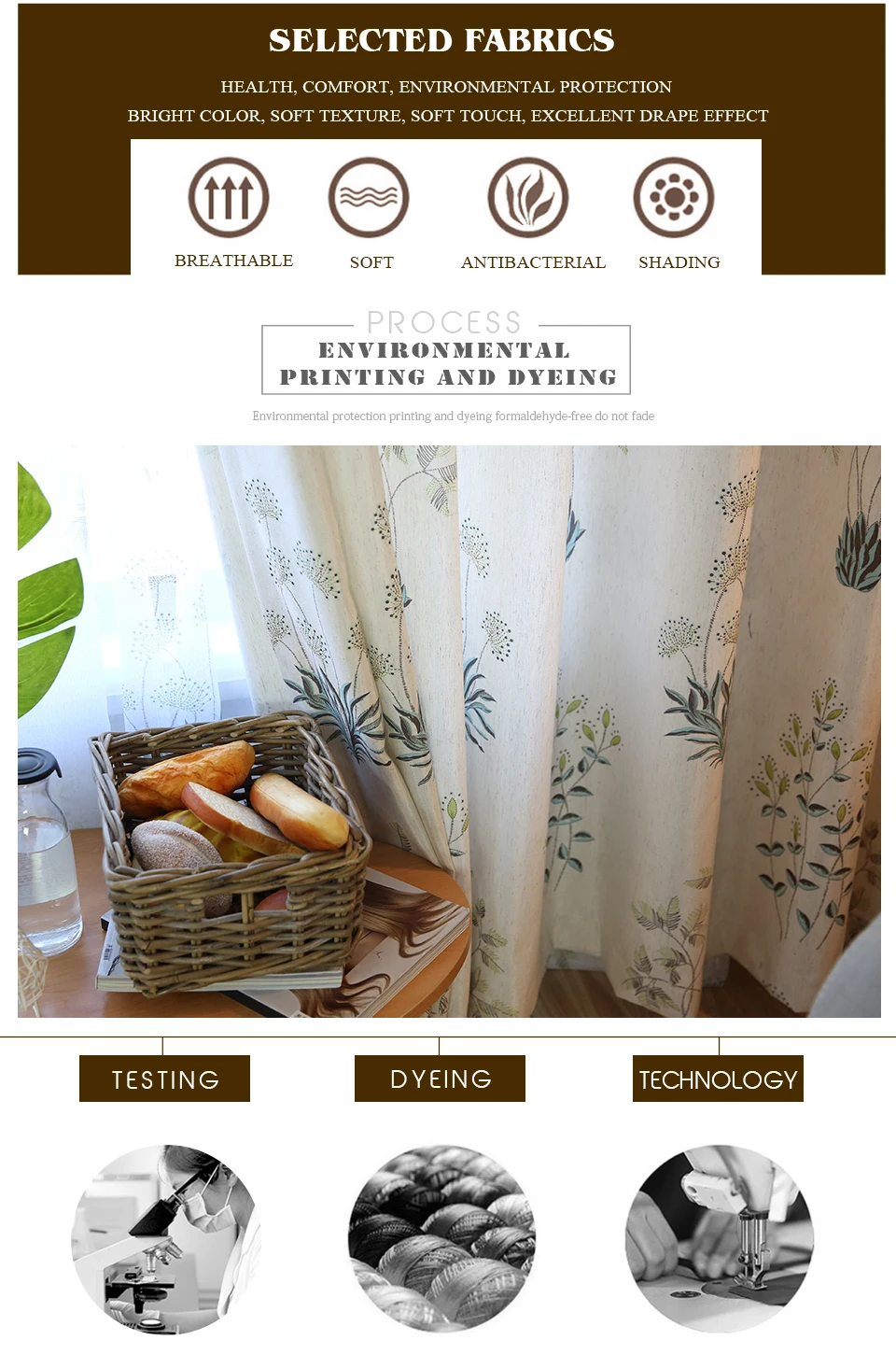 Шторы блэкаут с изображением растений, бежевые современные занавески в американском стиле для гостиной, спальни, кухни, драпировки