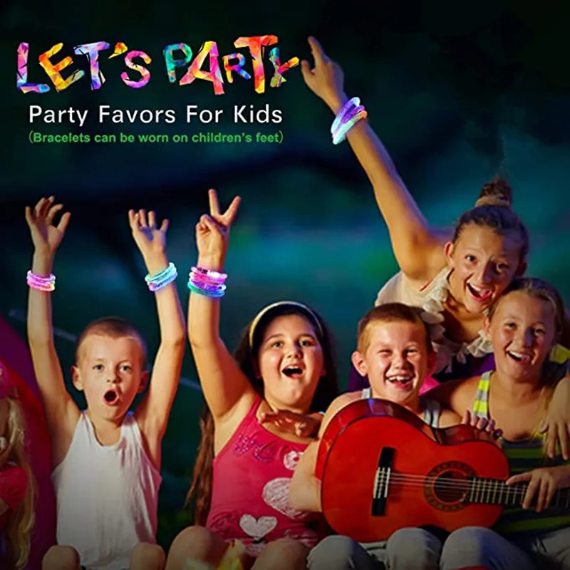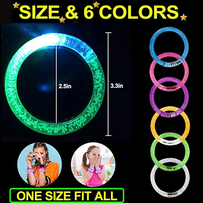 Светодиодный браслет снимается, таким образом, он подходит для детей, подростков и взрослых, наружный диаметр: 3,3 дюйма, внутренний диаметр: 2,5 дюйма. Вы можете разместить их в любом месте, на запястьях, руках, лодыжках ребенка.