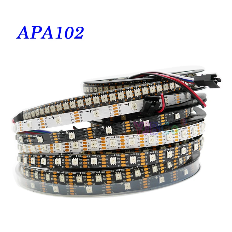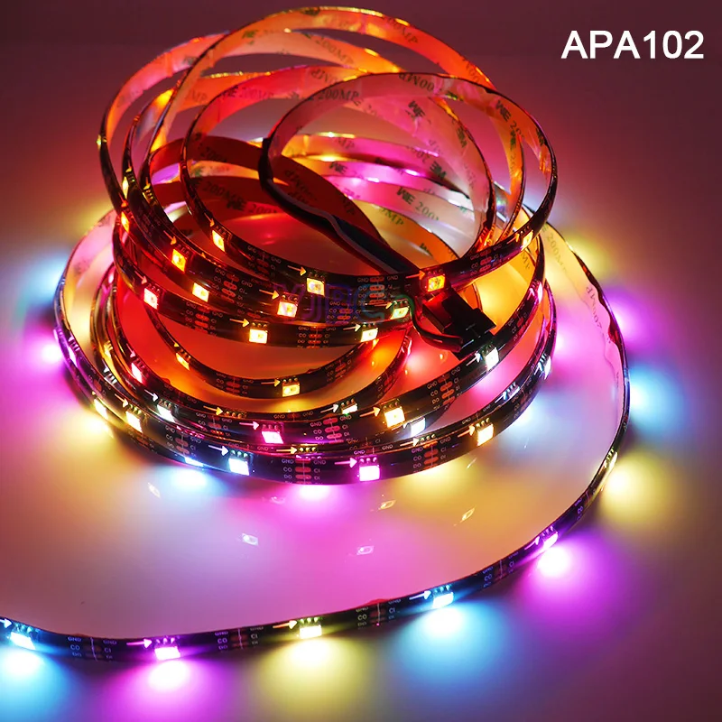 2. APA102 светодиодный, сделанный в Тайване, с высоколюменным светодиодный чипом, обновление даты 400 циклов. Таким образом, светодиодный ремешок APA102 может принимать большую дату от контроллера и менять цвет гладким, не мерцая, также сохраняет высокую яркость.