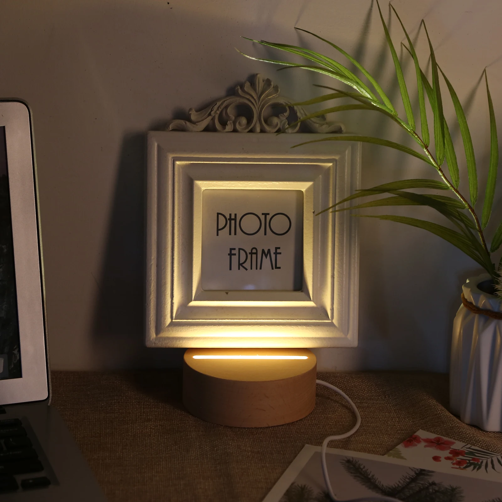 Деревянное основание для светодиодной лампы с USB-кабелем, ночник, ...