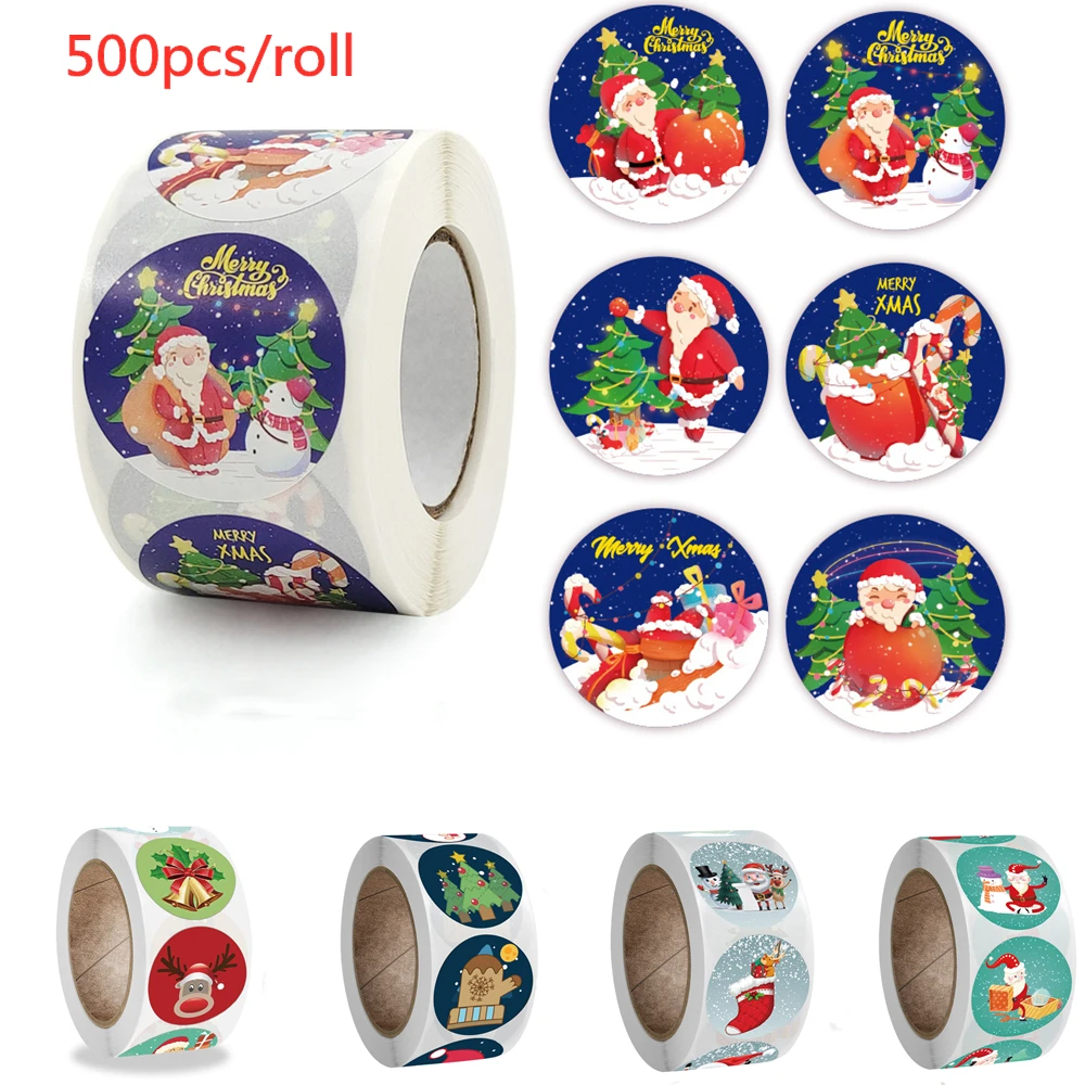 500 листов круглых рождественских наклеек, рулонная этикетка сделай...