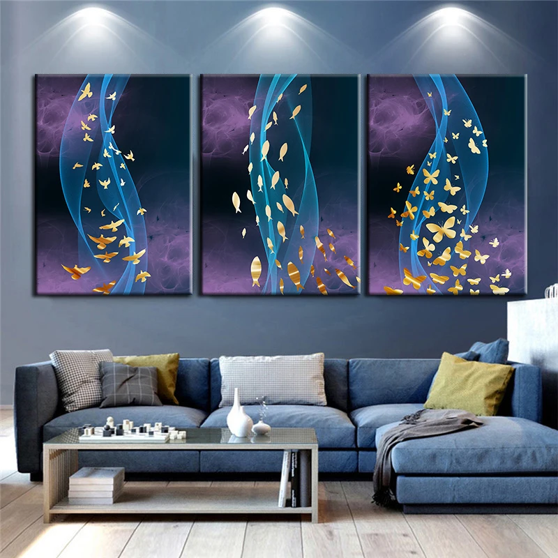 Абстрактная Роскошная Золотая Бабочка темно-синяя Картина на холсте Современная мода Настенная картина плакат Куадрос Декор для дома гостиной