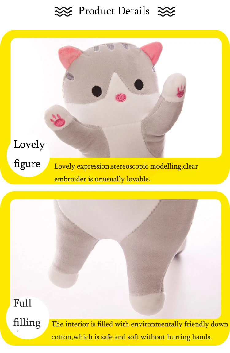Мягкаясимпатичнаяплюшеваядлинная игрушка-кошкаПодушкахлопковая кукл...