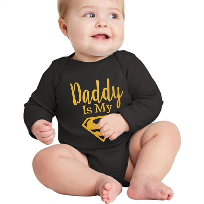 Детский комбинезон, Одежда для новорожденных мальчиков и девочек, золотой, с длинными рукавами, с изображением папы-моих героев, детский комбинезон, милое повседневное детское боди