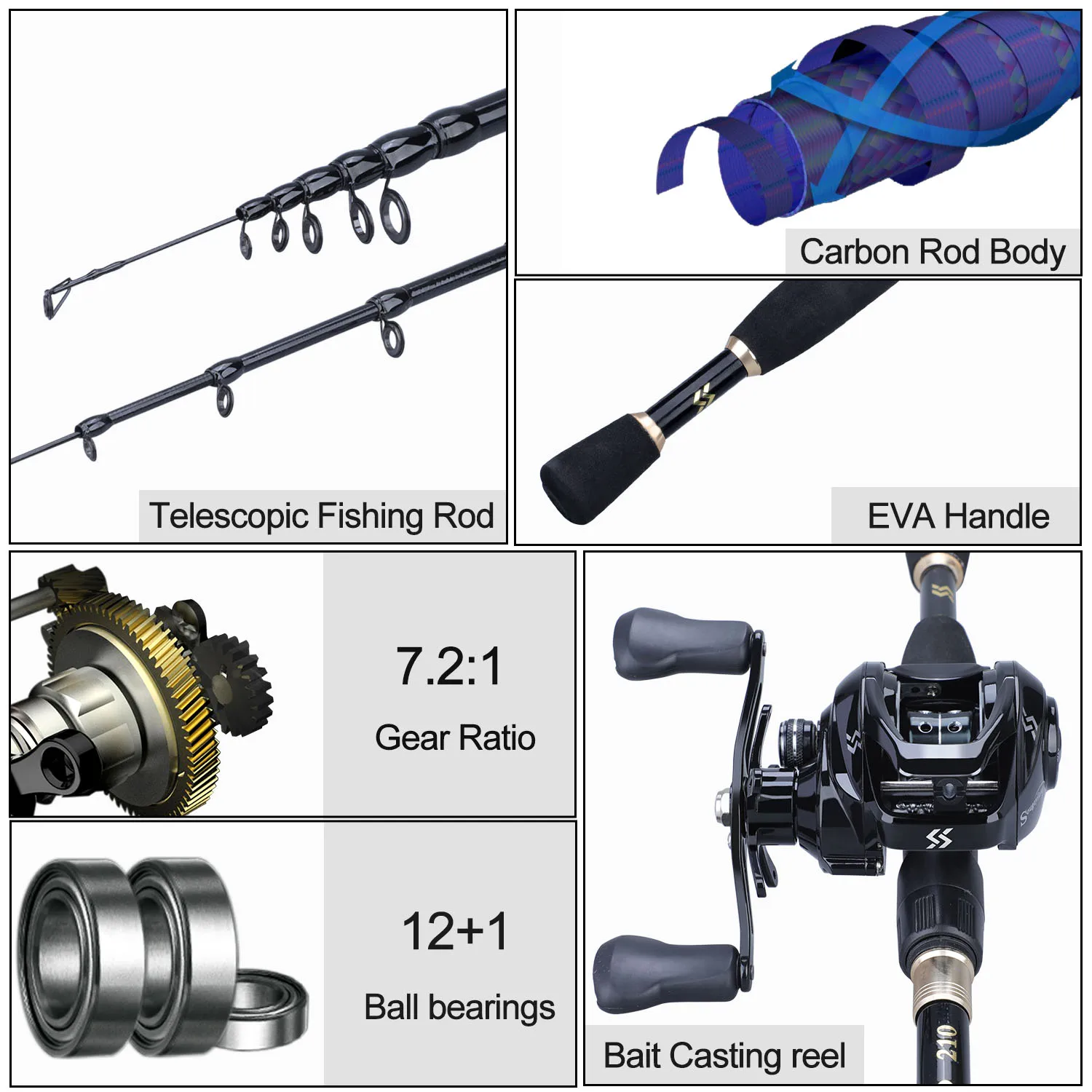 Рыболовная телескопическая удочка 1,8-2,4 м с высокоскоростной катушкой 7,2: 1 и леской 150 м