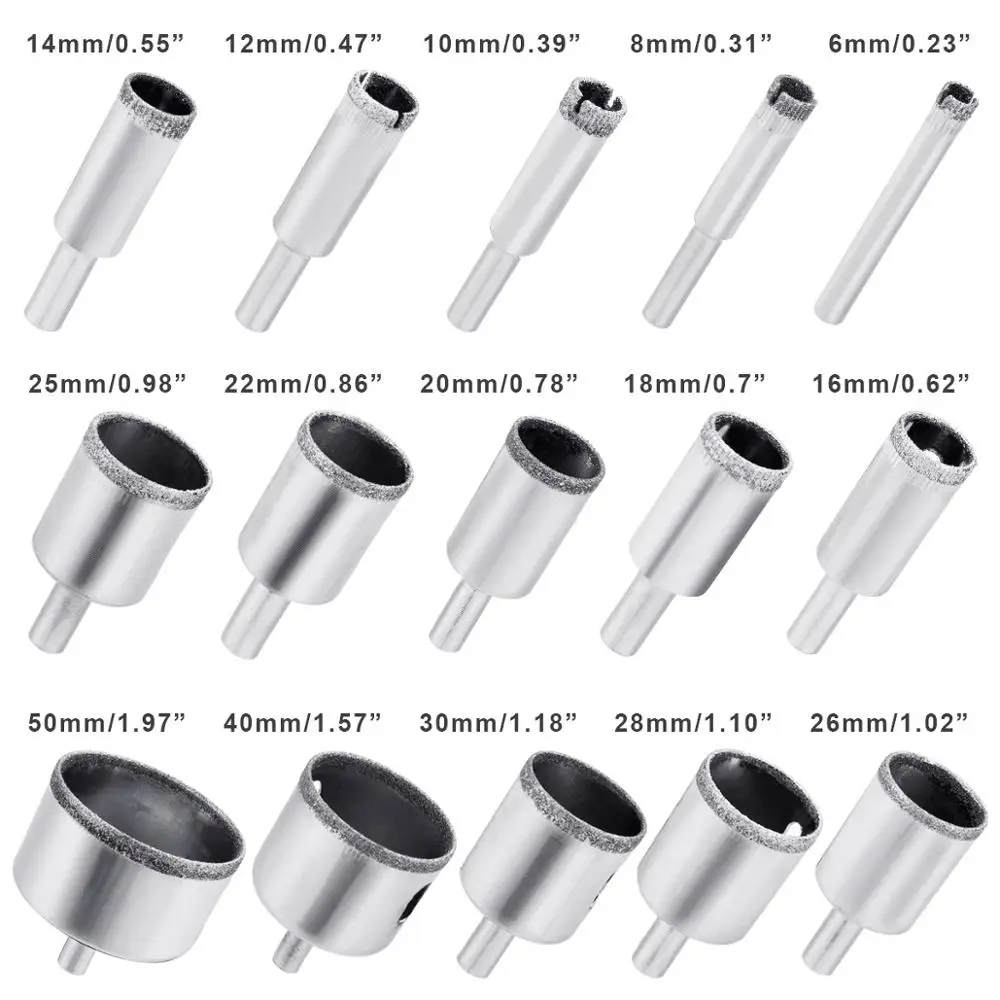 Набор сверл с алмазным покрытием, набор из 15 предметов для открывания отверстий из мрамора, стекла, керамики, электроинструмент, сверло 6 мм-50 мм