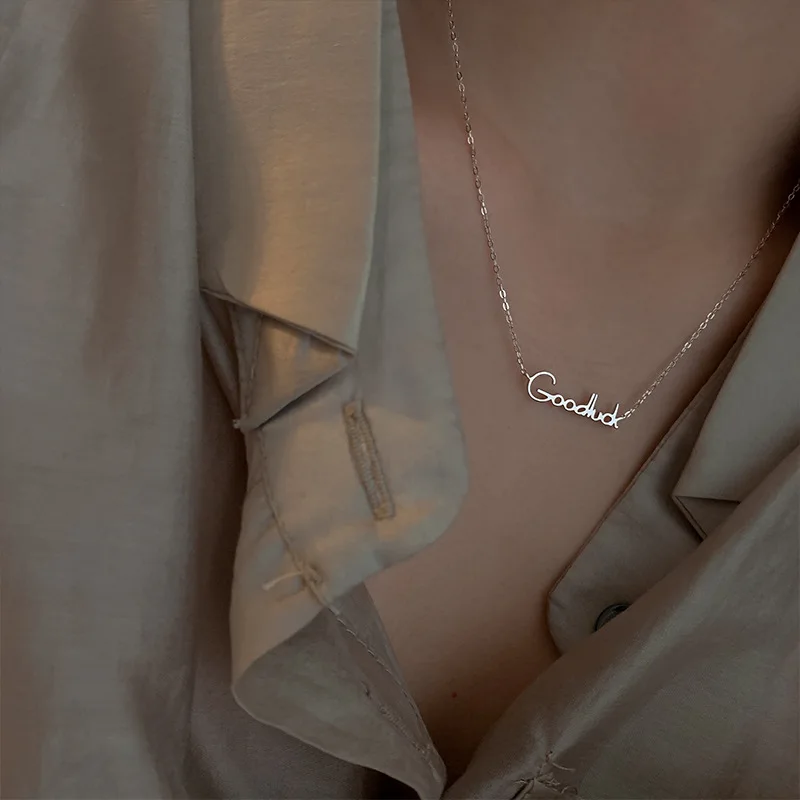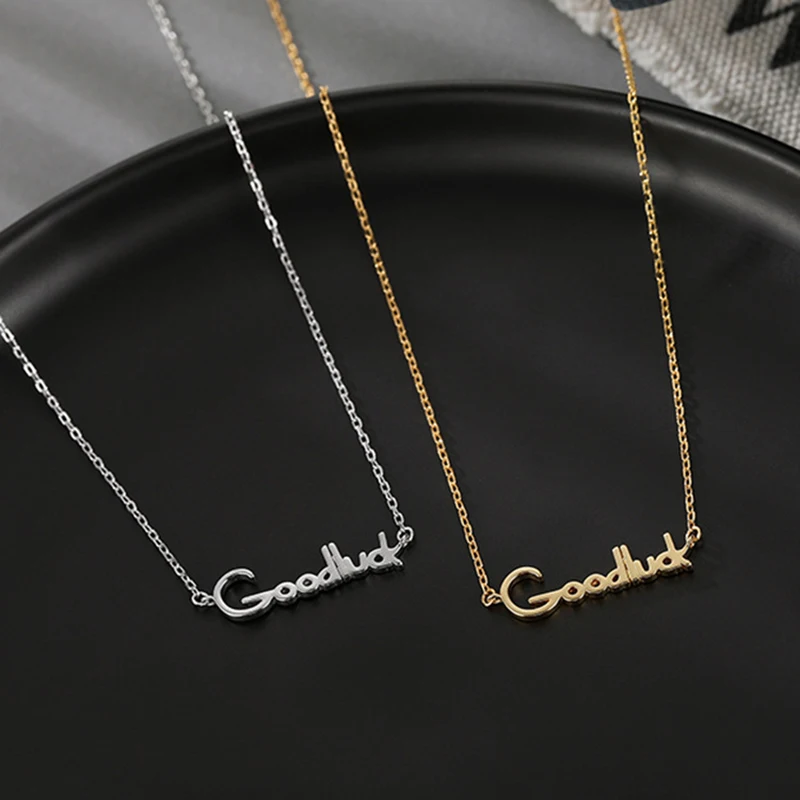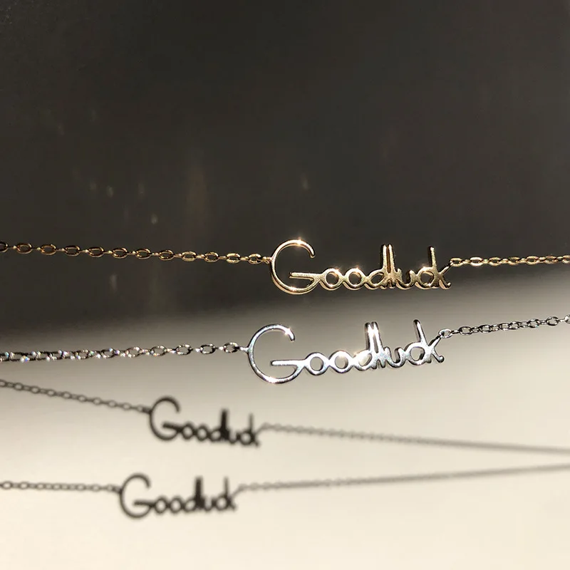 Женская цепочка серебряного цвета с надписью Goodluck-ожерелье прос...