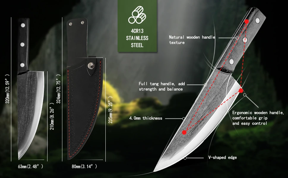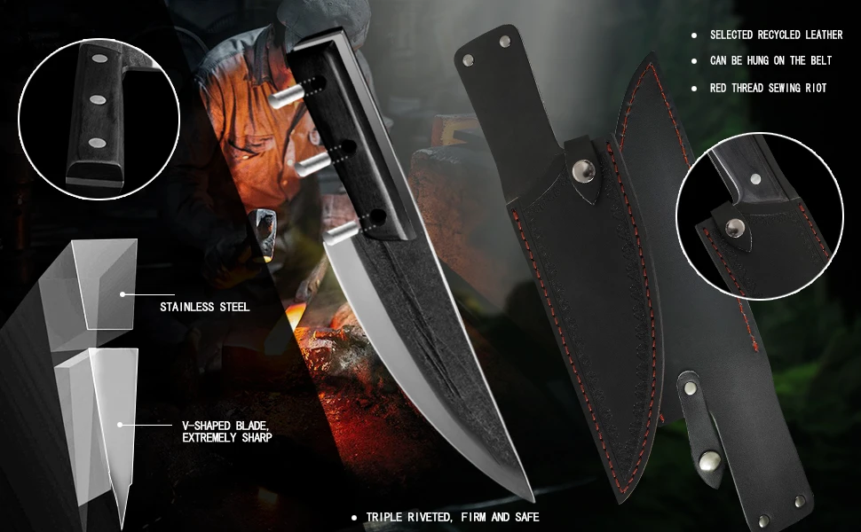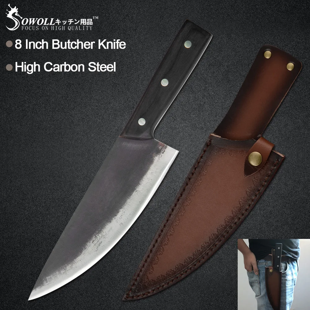 Нож шеф-повара ручной работы Sowoll 8 дюймов, инструменты для кемпинга и пешего туризма, кожаный чехол, Обложка, набор сербских ножей шеф-повара для выживания на природе