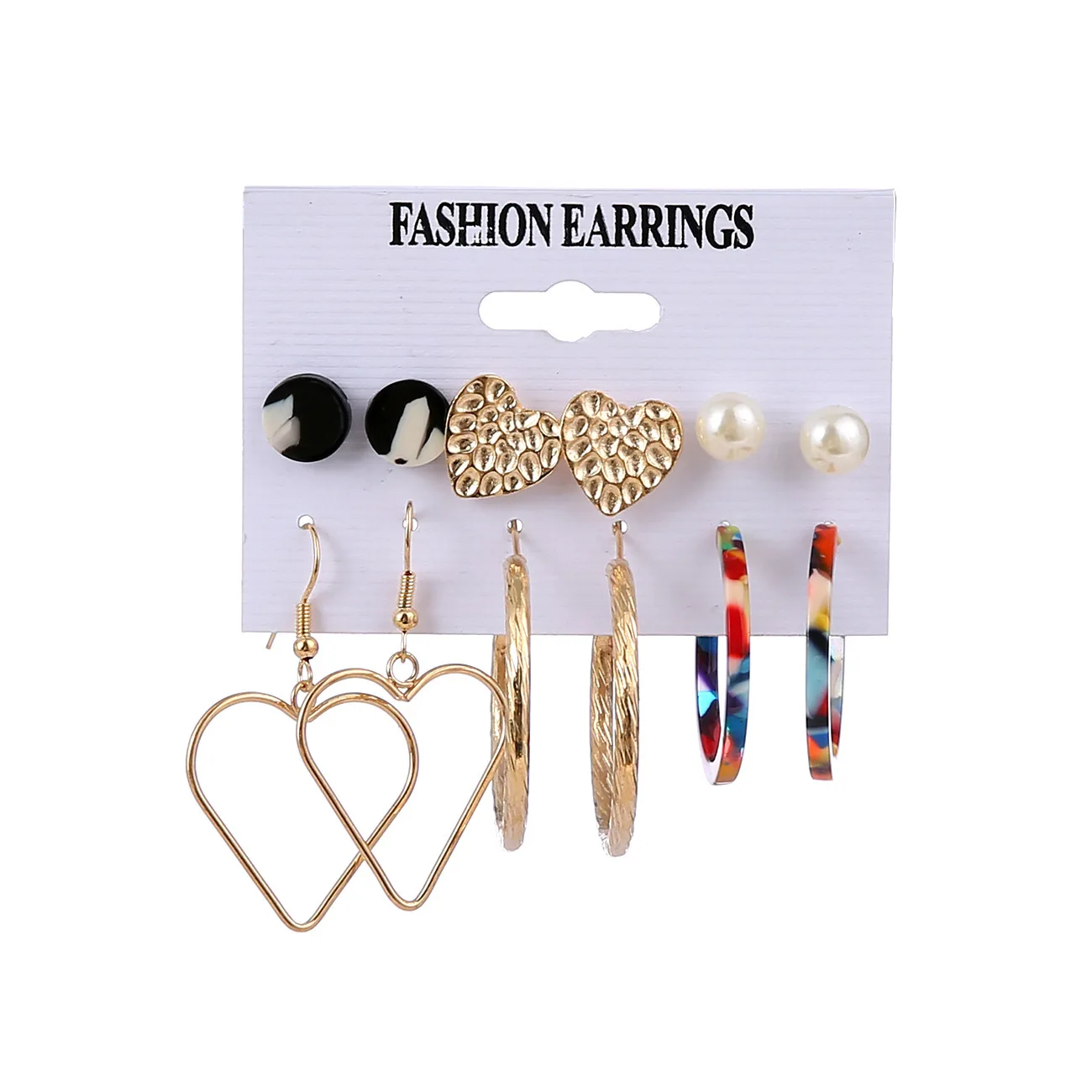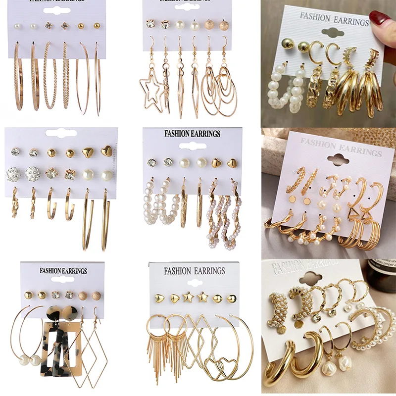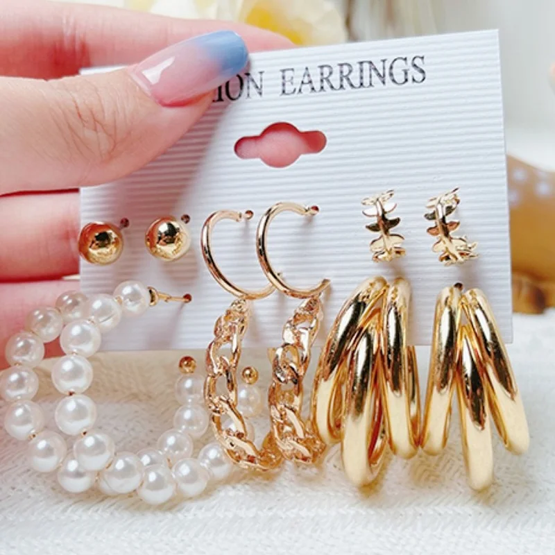 Модный набор жемчужин для женщин, геометрические металлические серьги-кольца 2021, Женские Ювелирные изделия Вечерние