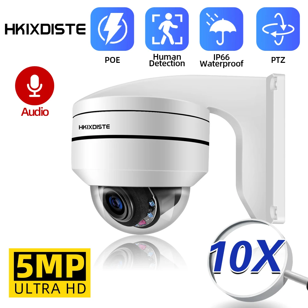 5MP наружная IP66 купольная ip-камера PTZ POE 5MP 10X оптическое Масштабирование Обнаружение движения ночное видение IR 35m Аудио CCTV камера безопасности P2P