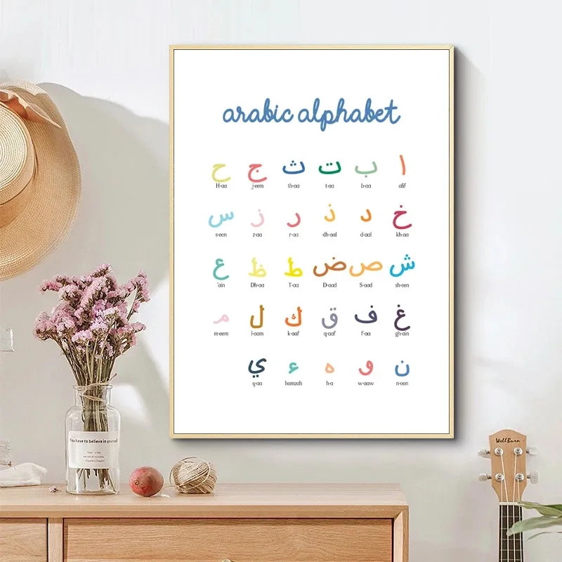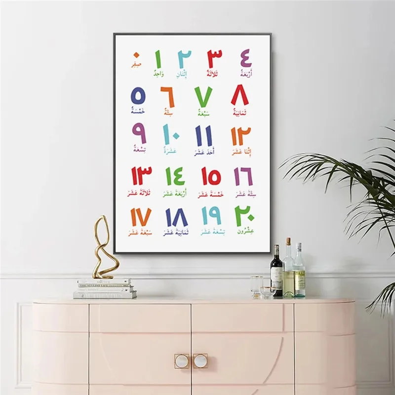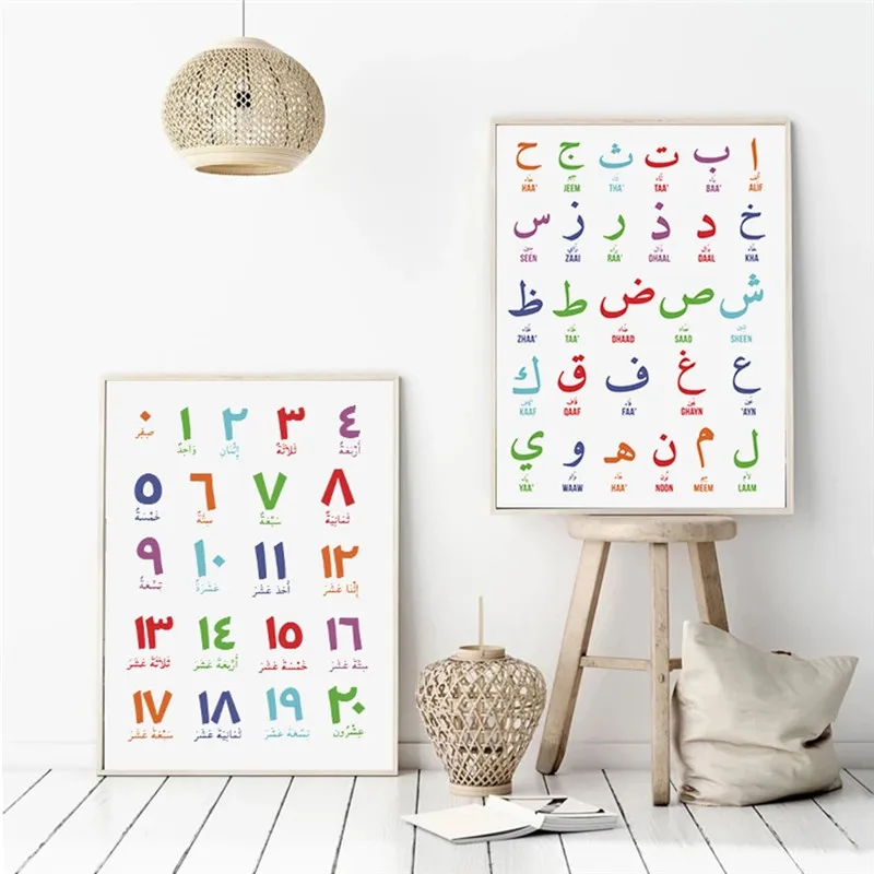Арабские цифры, Картина на холсте с буквами раньше, исламский алфавит, настенное искусство, Детская образовательная печать, картина для детской спальни