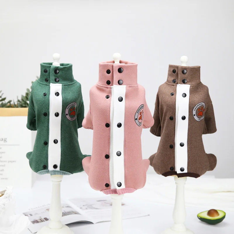 Комбинезоны для маленьких собак, универсальные плотные комбинезоны разных цветов, одежда для девочек с четырьмя ногами и пуговицами для осени и зимы
