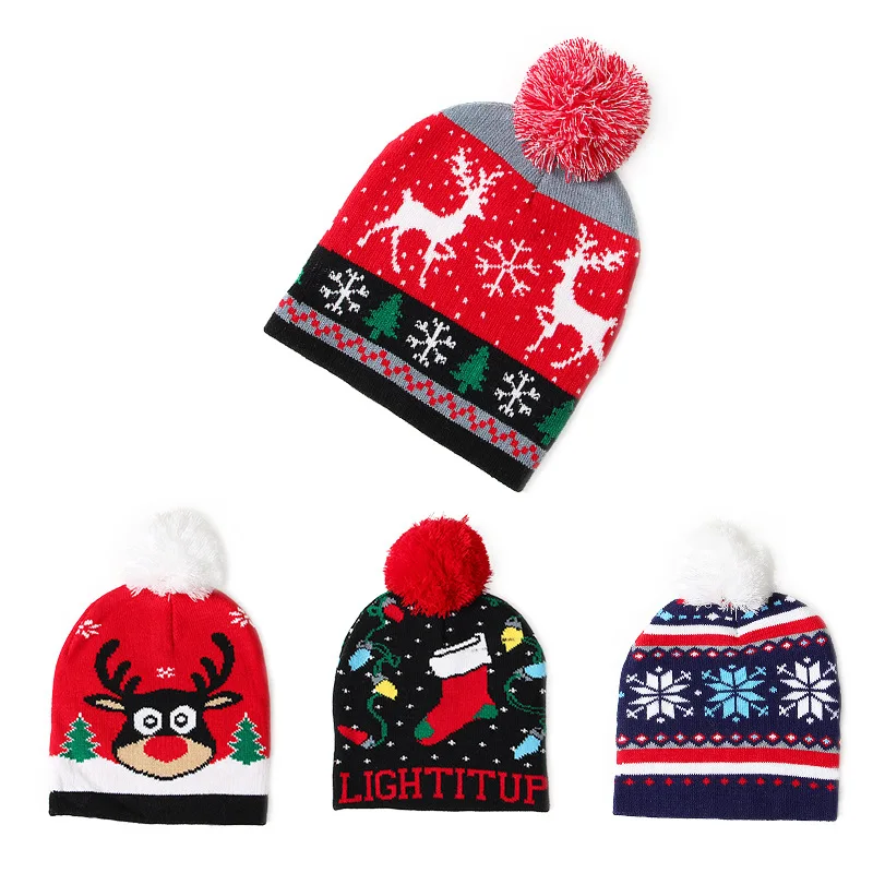 Рождественские шапки, вязаная шапка с Санта-лосем, снеговиком, детс...