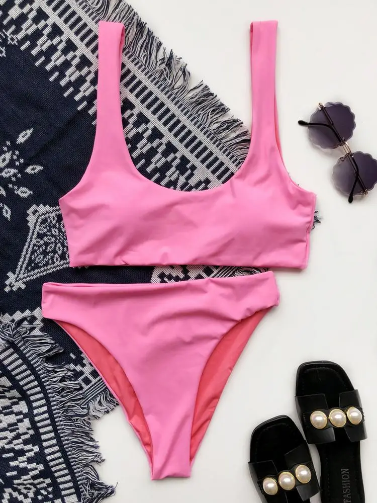 Новый стиль простое бикини с высокой талией 2021 европейский и американский сексуальный пляжный купальник двухсторонний Купальник Оптовая торговля