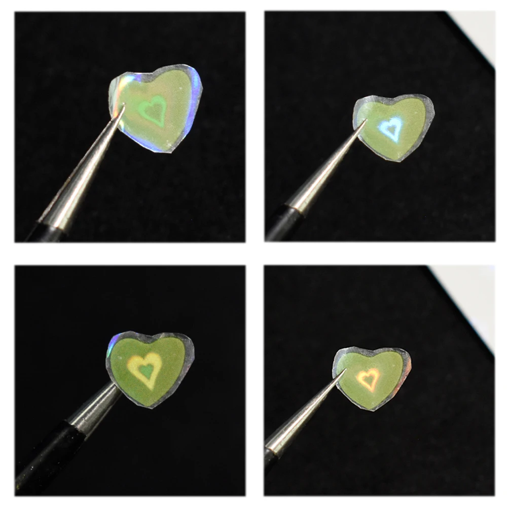 1 лист 3D наклеек для ногтей с динамическим сердцем, голографически...