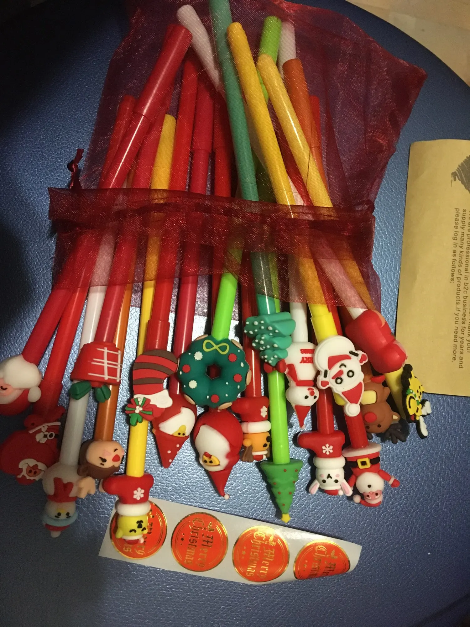 llegaron perfecto y antes del tiempo indicado. Lo que no me gustó es que algunos de los bolígrafos traen el adorno mucho más simple sin ser con muñeco como el resto. Compré 3 paquetes para regalar a los peques de 2aulas y de los 60, 10 no traían muñeco como los de la foto.