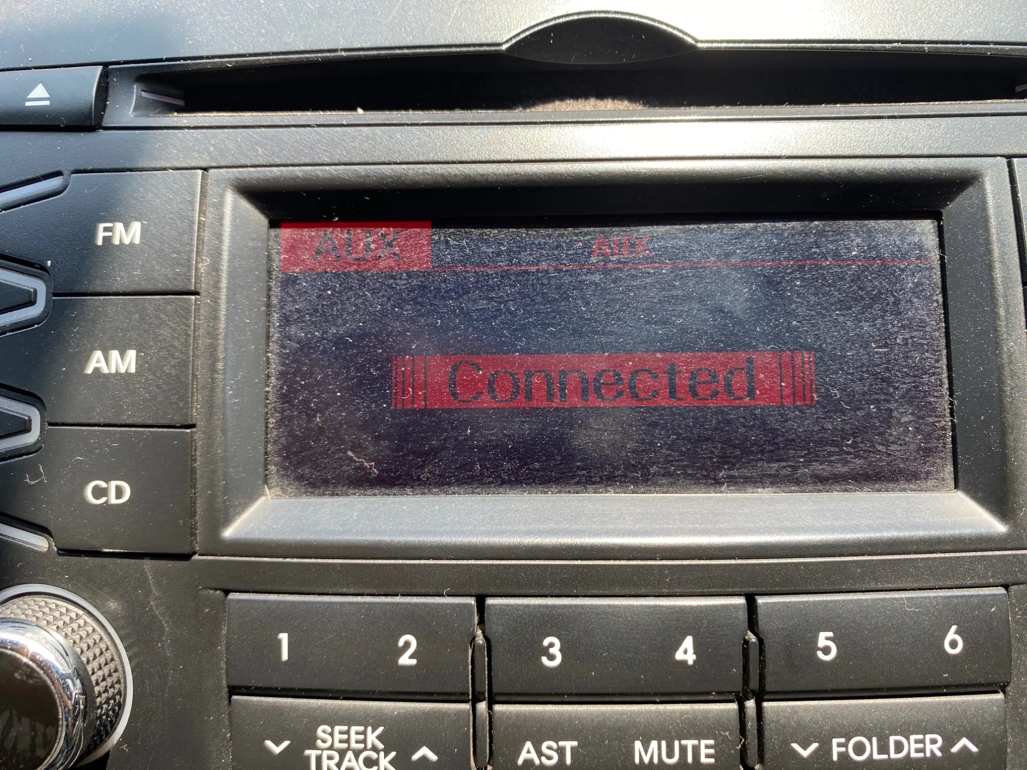 2. Включите стереосистему автомобиля, переключитесь в режим AUX вручную на автомобильную стереосистему.