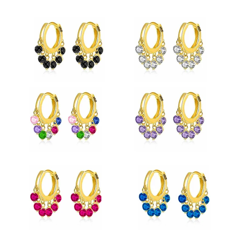 Женские Разноцветные Мини-серьги из серебра 925 пробы с шестью шариками, яркиебелыеГолубыерозово-красныечерные циркониевые серьги