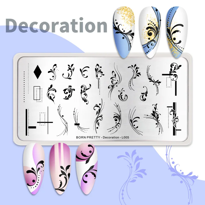 Штамповочные пластины BORN PRETTY с геометрическими цветами и полосками, штампы для ногтей, шаблоны для фотографий, инструменты для маникюра