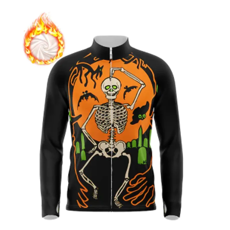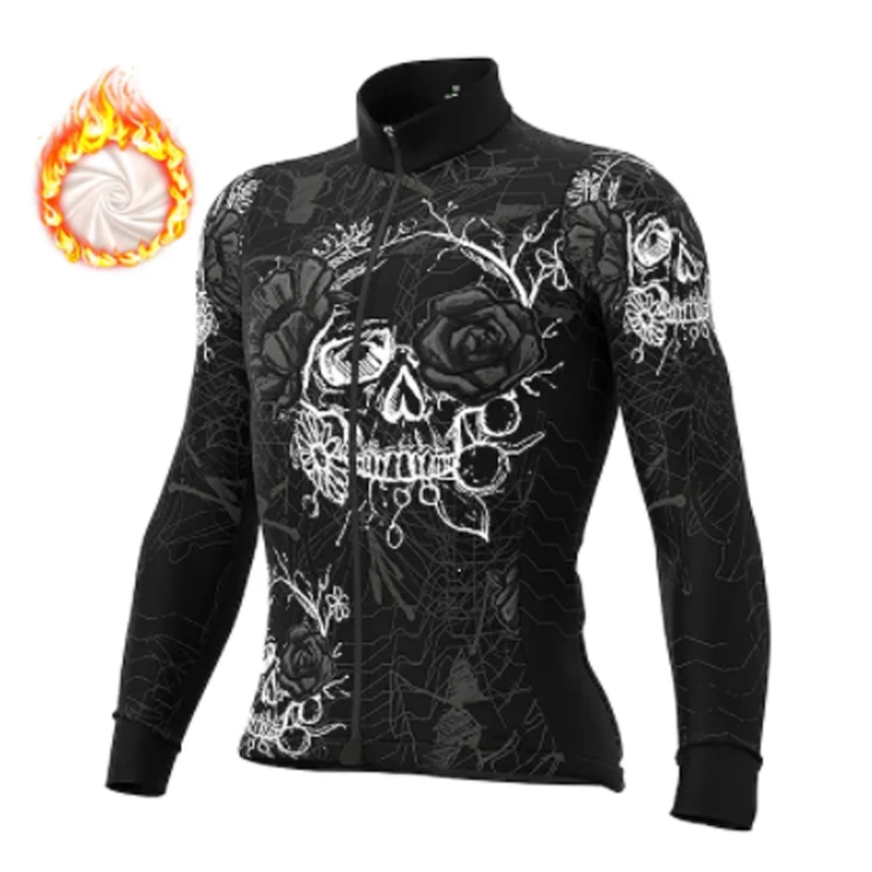 Новинка 2021, зимняя велюровая веломайка с принтом черепа, велосипедный Топ, сохраняющая тепло, мужская спортивная куртка для велоспорта и бега
