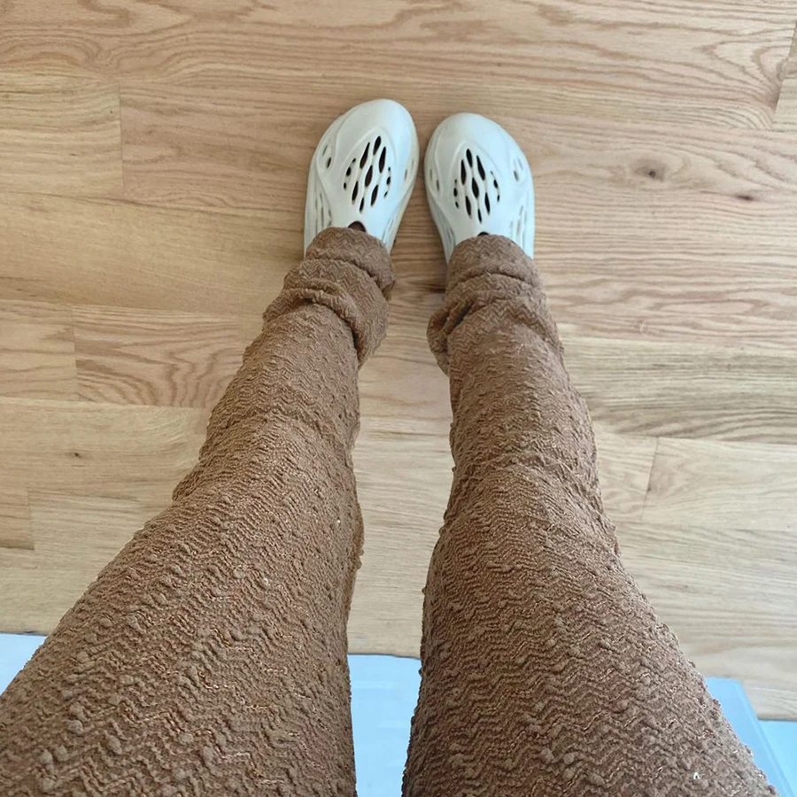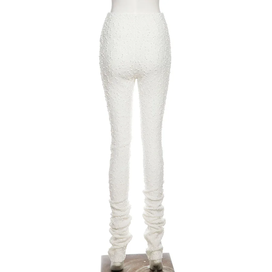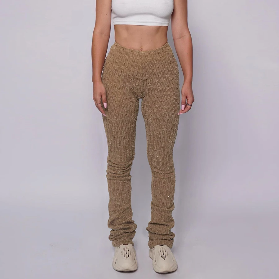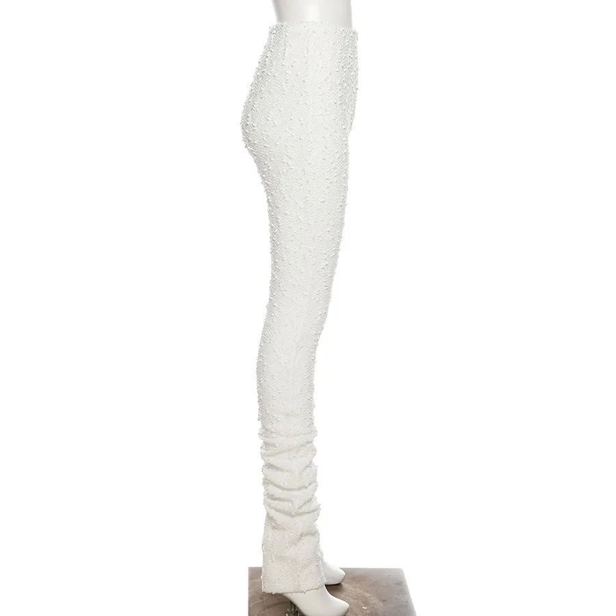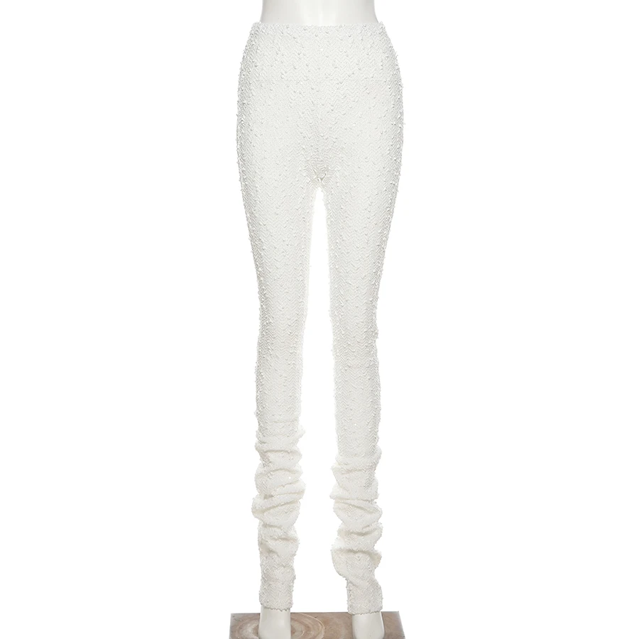 Брюки-карандаш женские пушистые с завышенной талией и блестками