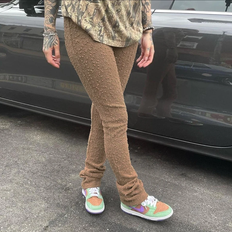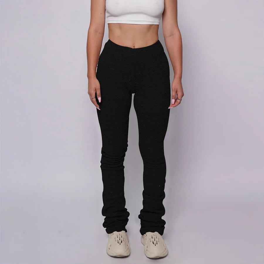 BOOFEENAA модные однотонные трикотажные штаны с высокой талией для ...