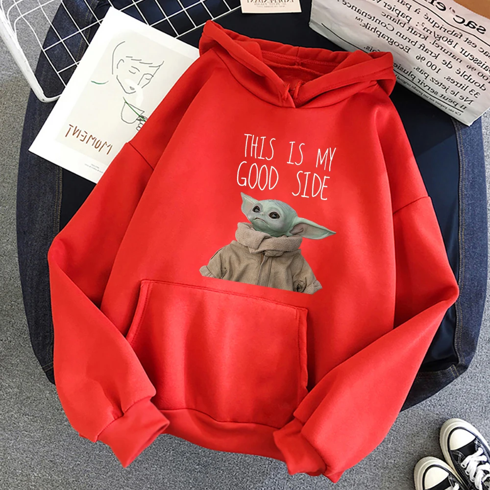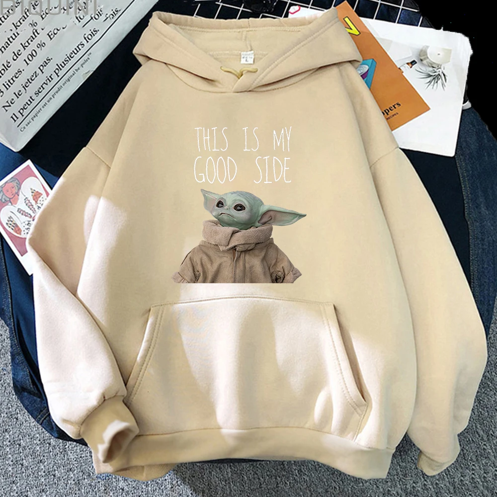 Толстовка мужская флисовая с капюшоном, модная уличная одежда с мультяшным принтом Звездные войны, Good Side Kawaii Yoda