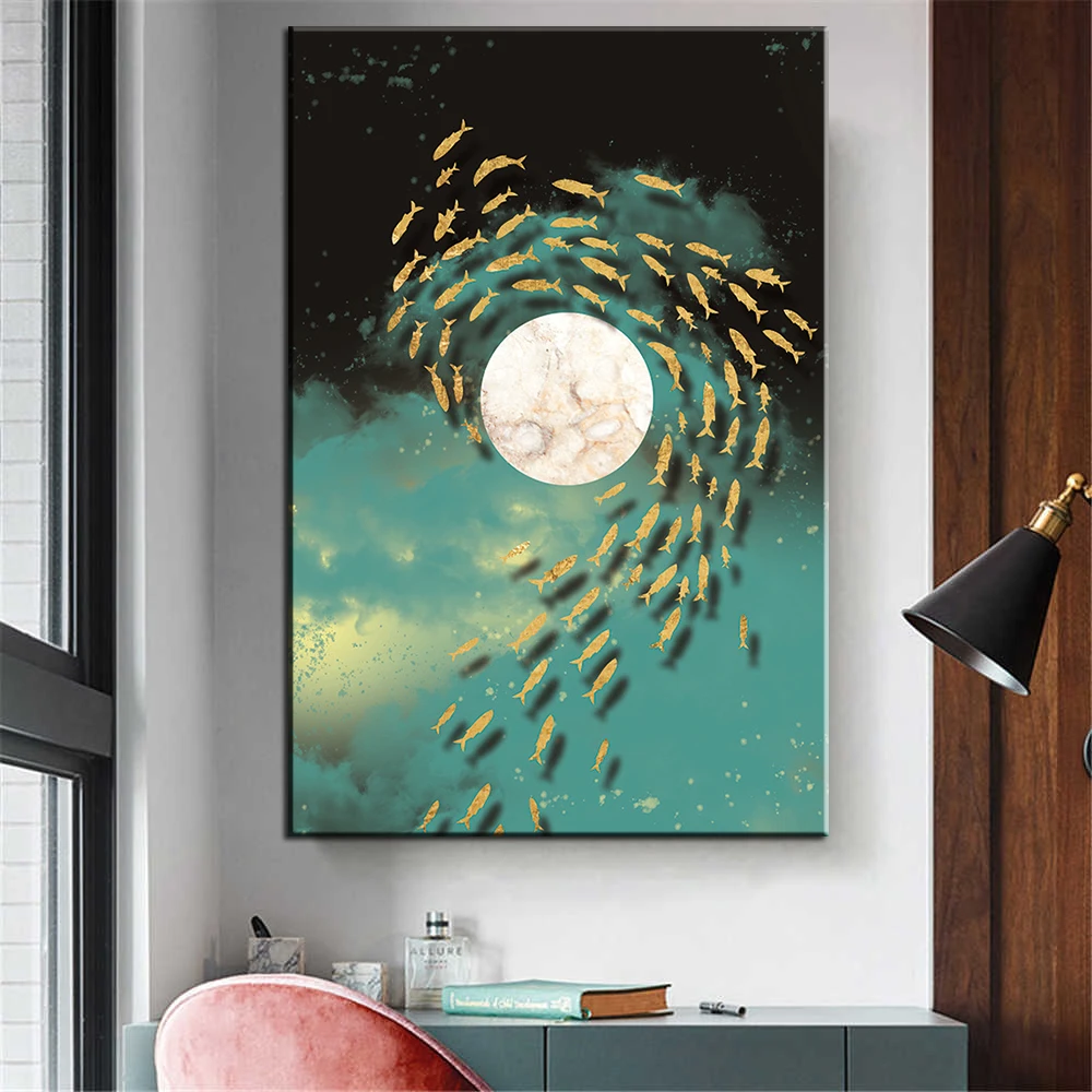 Абстрактная Роскошная Золотая Бабочка птица рыба зеленая Картина на холсте настенные картины Плакаты Декор для дома гостиной