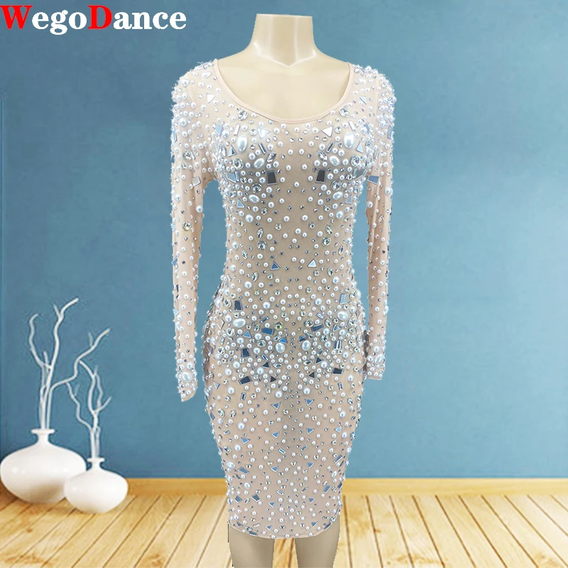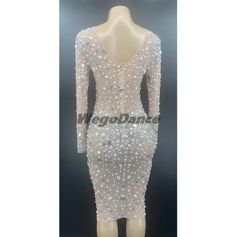 Пикантное прозрачное Сетчатое платье с большими жемчужинами, блестя...