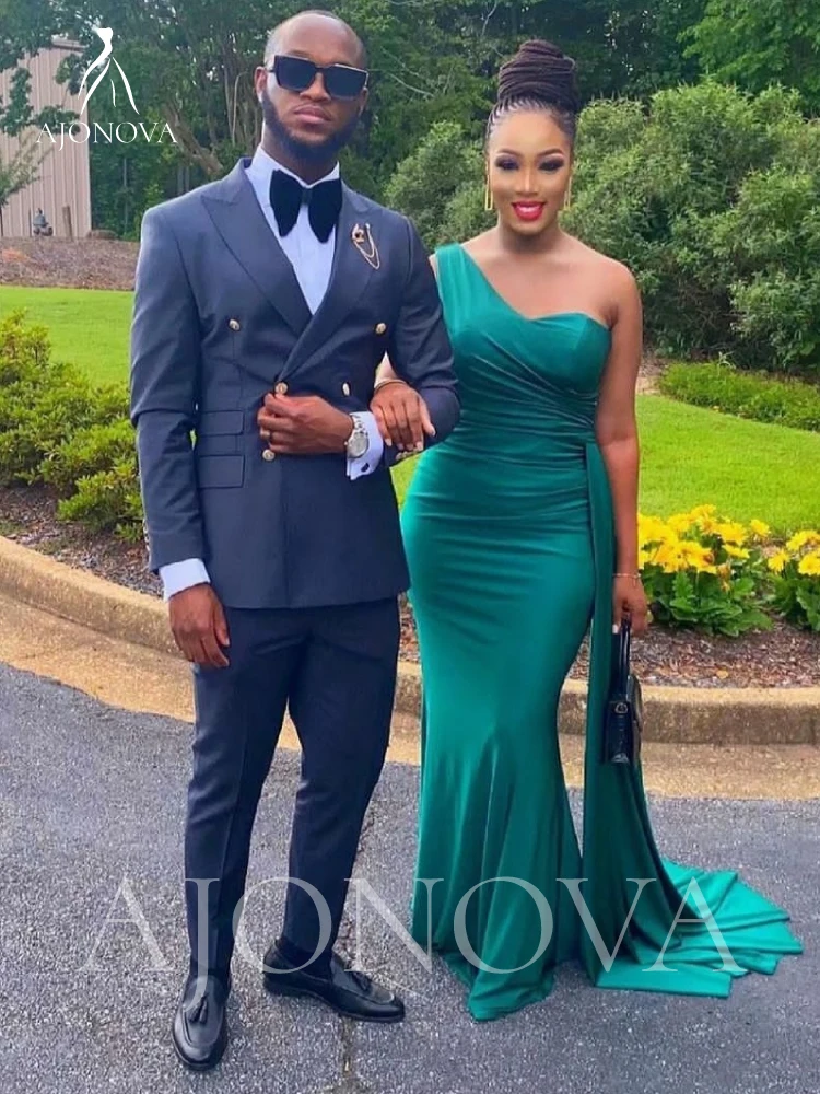 Женское атласное платье-Русалка, элегантное зеленое платье на одно плечо для свадебной вечеринки, формальное платье для подружки невесты, 2022