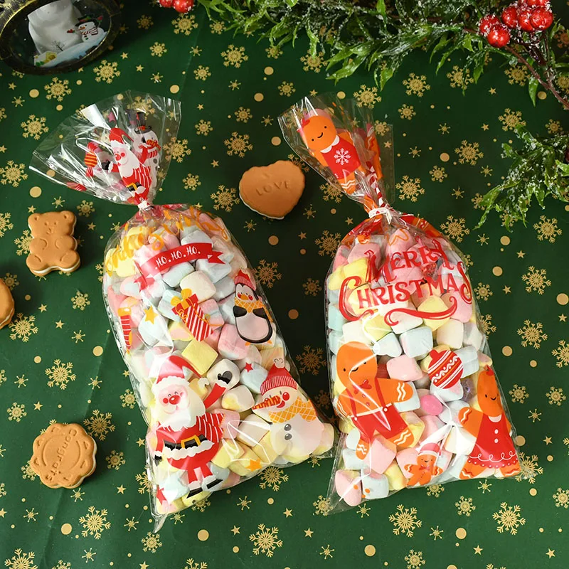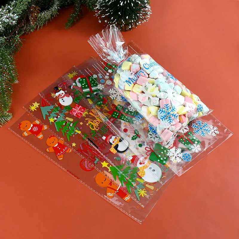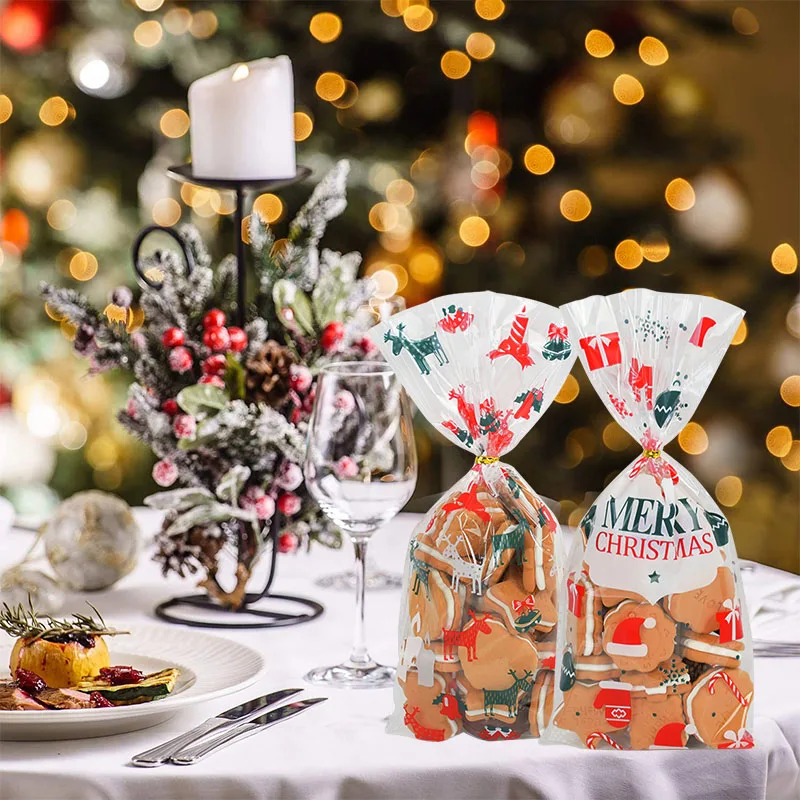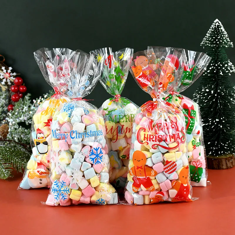 50 шт., прозрачные пластиковые пакеты для упаковки подарков на Рождество