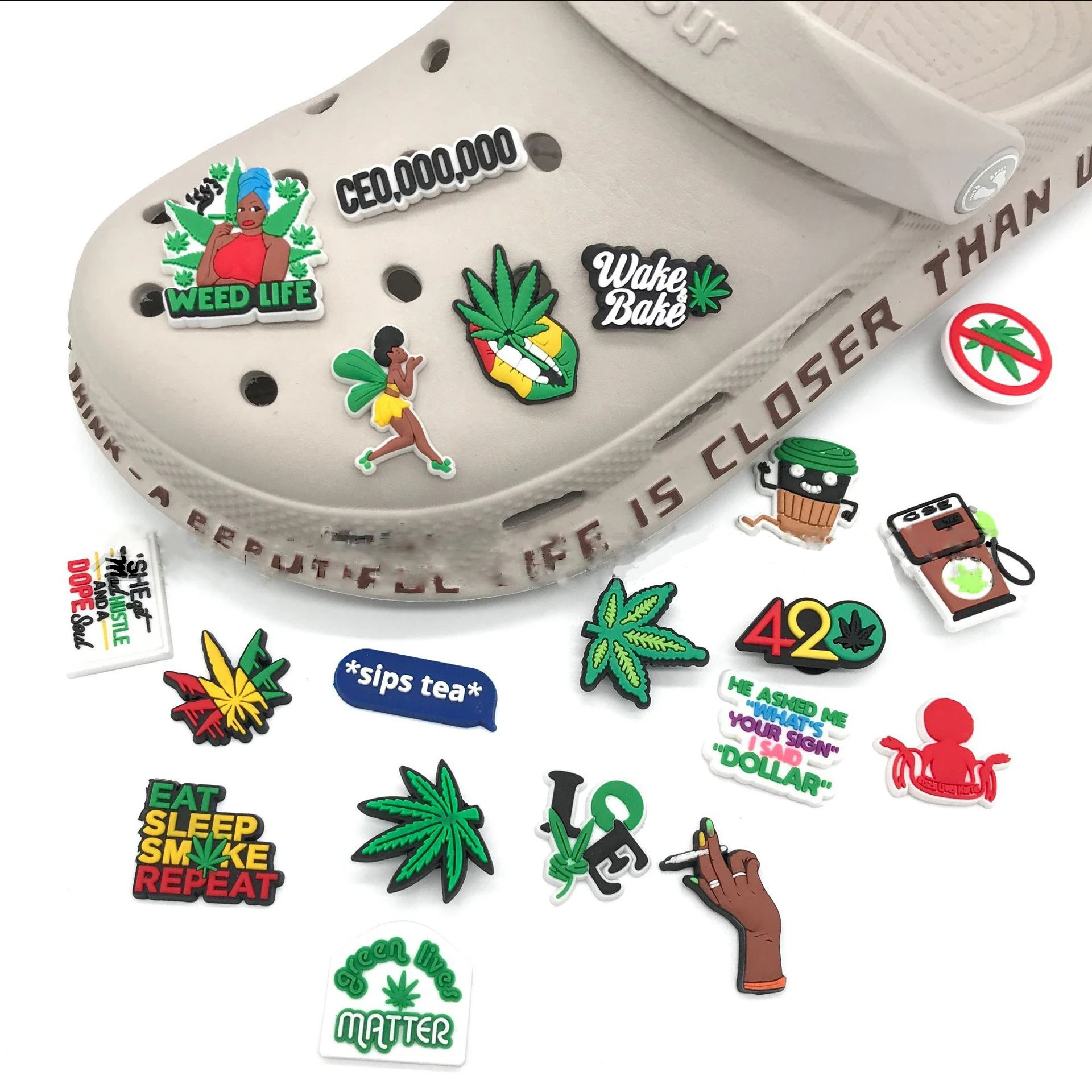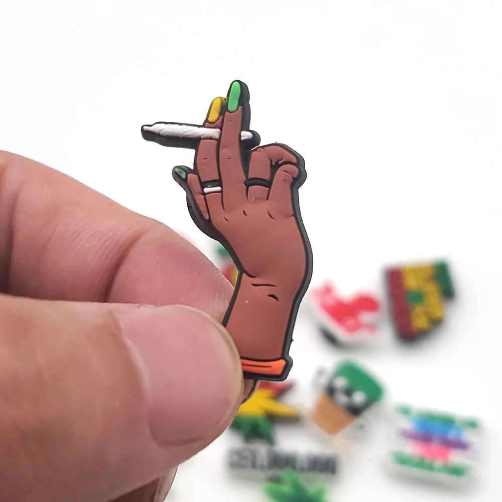 Лидер продаж, 1 шт., подвески для обуви из ПВХ с зелеными листьями, забавные аксессуары для обуви сделай сам из марихуаны, подходят для украшения сандалий, унисекс, подарки на Рождество для взрослых jibz