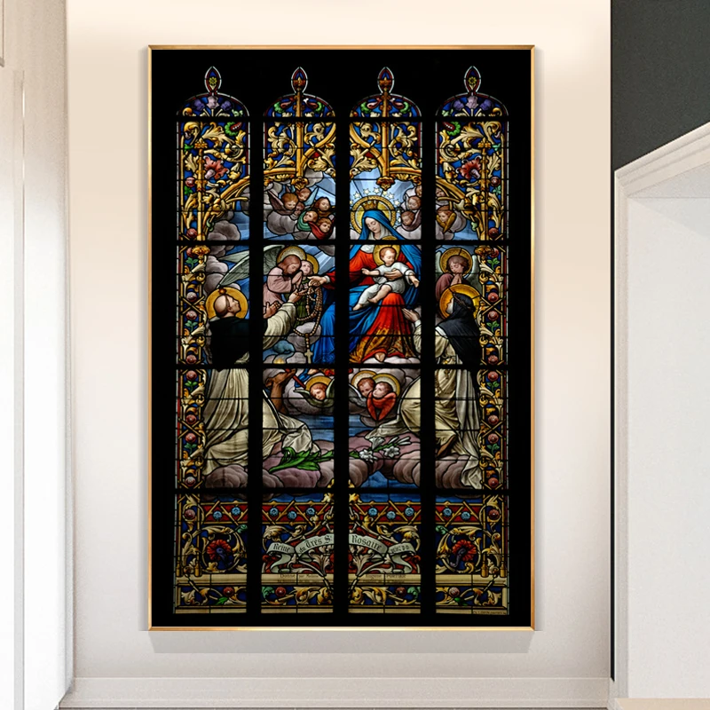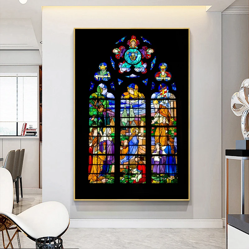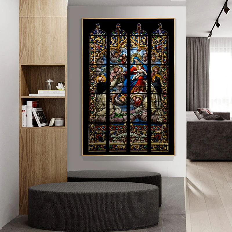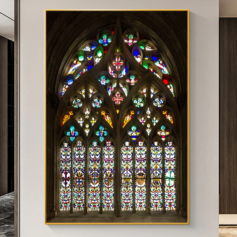 Витражные окна монастыря, искусство на холсте, винтажная картина для украшения гостиной