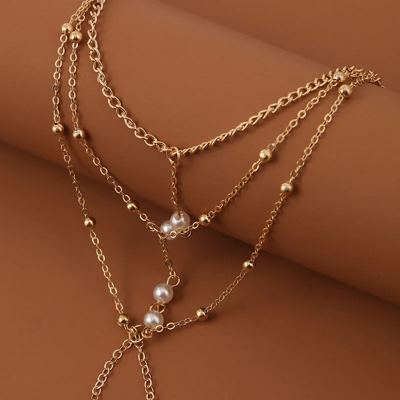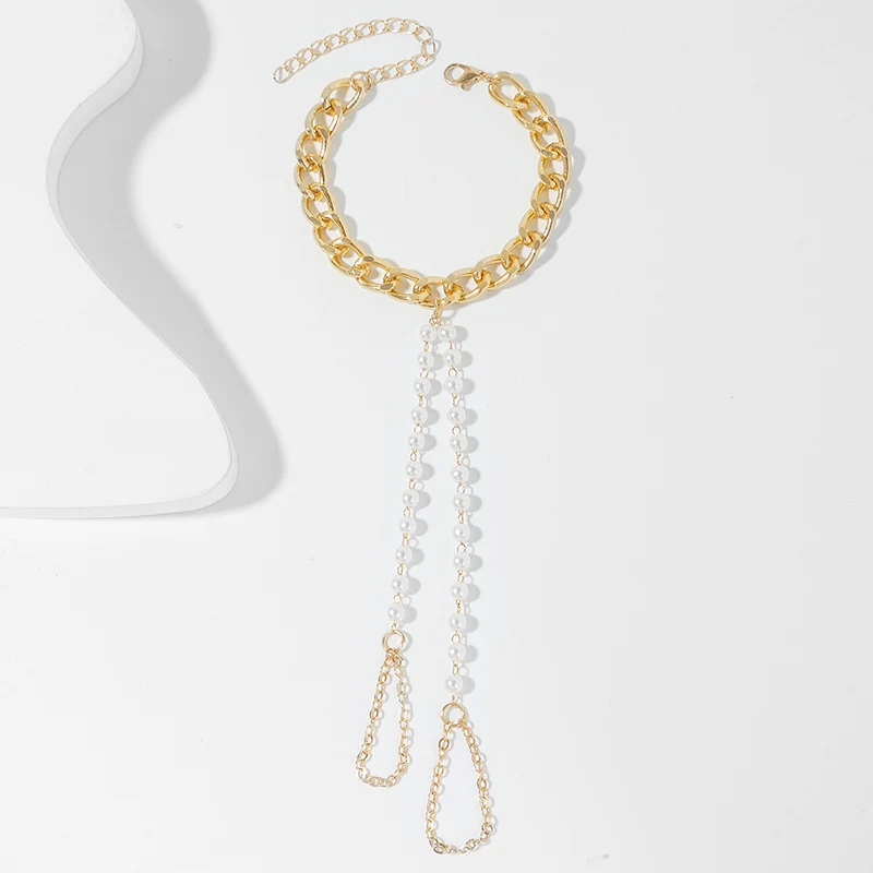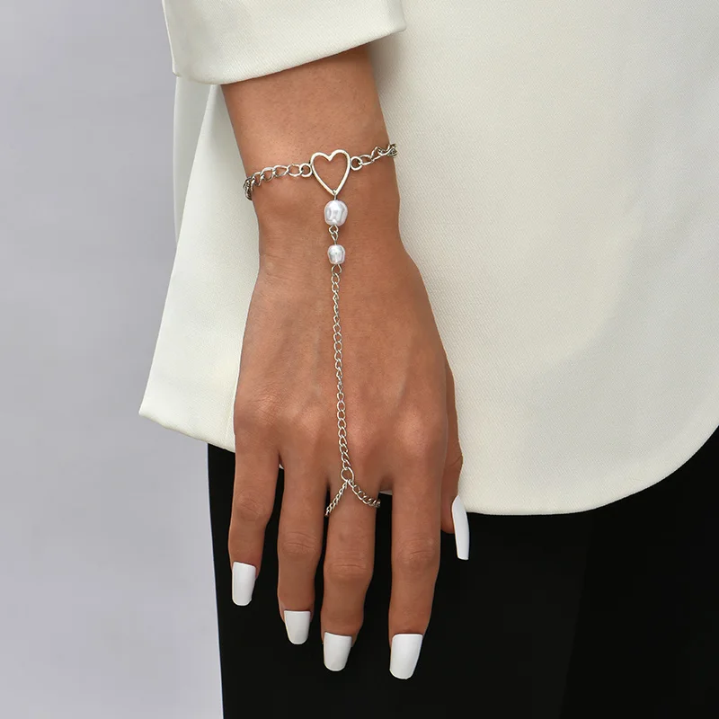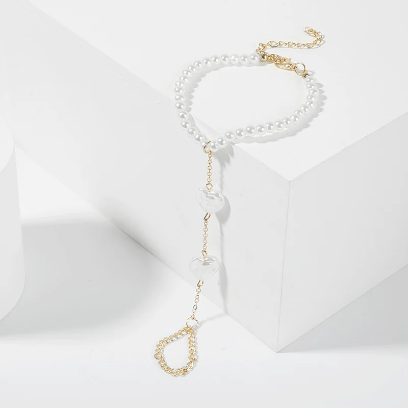 Простые Женские металлические браслеты-цепочки в форме сердца для женщин, браслеты-цепочки с белым жемчугом, ювелирные аксессуары