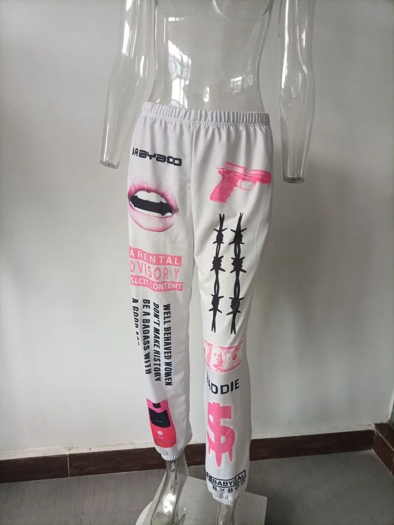 Комплект женских графических брюк в стиле хип-хоп, джоггеры, брюки ...