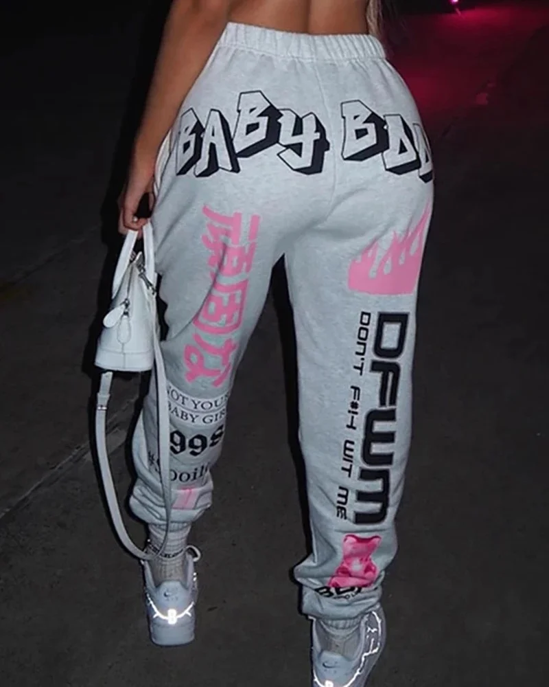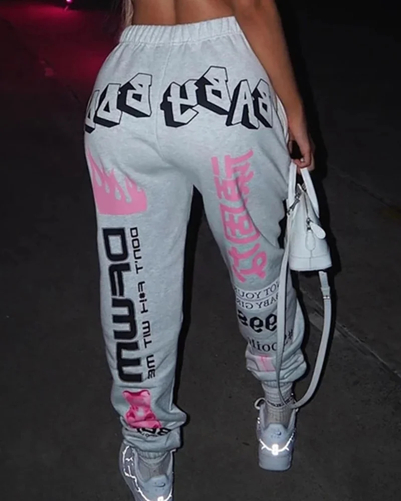 Штаны спортивные женские, с графическим принтом, в стиле хип-хоп