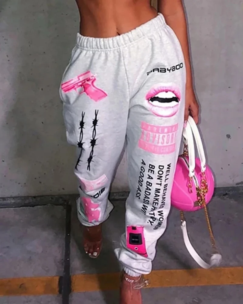 Брюки в стиле хип-Pop для женщин, спортивные штаны с графическим принтом губ, женские забавные крутые штаны с принтом для бега, уличная одежда, брюки